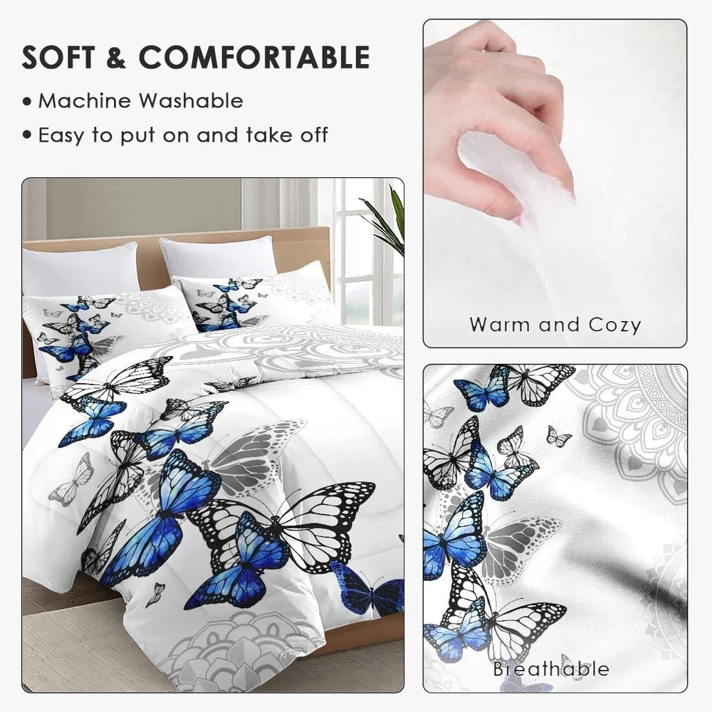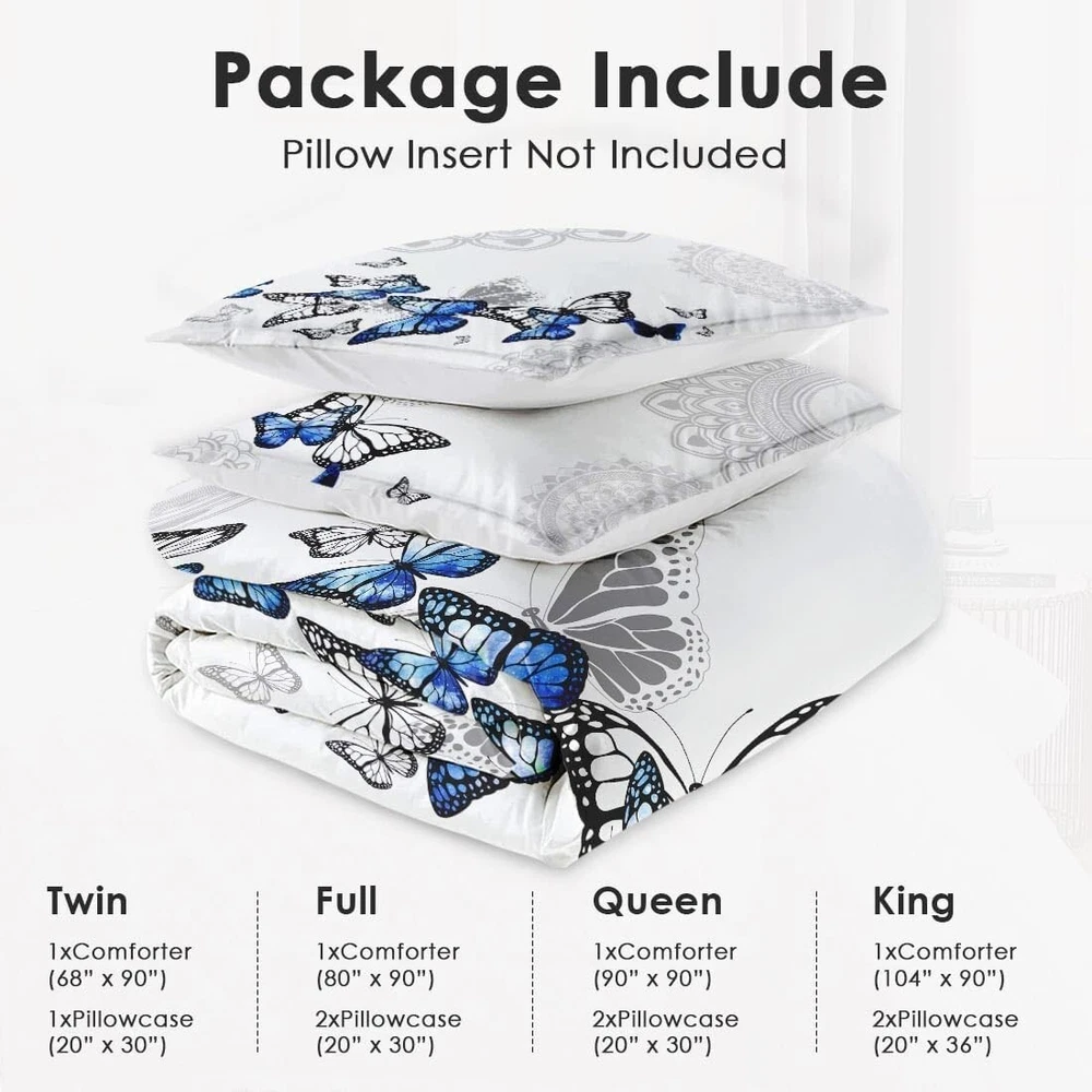 Soft Microfiber Full Size Comforter with Striking Butterfly Design & Pillowcases ‹ › ‹ › ‹ › ‹ › ‹ › ‹ › ‹ › ‹ › ‹ › Soft Microfiber Full Size Comforter with Striking Butterfly Design & Pillowcases Transform your bedroom into a serene sanctuary with our Soft Microfiber Full Size Comforter, adorned with a breathtaking butterfly design that captures the essence of beauty and tranquility. Features: Exceptionally Soft & Cozy: Experience luxurious comfort with this premium bedding set. Made from superior-quality microfiber and filled with polyester, it ensures year-round coziness for undisturbed sleep. Full Size Set: Includes a generously-sized comforter measuring 80" x 90" and 2 pillowcases (20" x 30"). Note: Pillow inserts are not included. Masterfully Crafted: Each piece is meticulously constructed with precise stitching for long-lasting durability. Enhanced with HD digital printing, the vibrant designs will be a stunning focal point in your room. Care Instruction: Machine wash cold on a gentle cycle for easy maintenance. Tumble dry on low for the best results. Avoid bleach to preserve the vivid colors. Versatile & Travel-Friendly: Perfect for home or to spruce up a guest room, dormitory, RV, or vacation residence. Lightweight and portable for those always on the go or enjoy outdoor excursions. Benefits: Luxurious softness that envelops you in comfort. Stunning design adds a touch of elegance to any decor. Durable construction ensures longevity and maintain its beauty. Effortless care for your busy lifestyle. Lightweight, making it easy to transport anywhere. Why Choose Our Comforter Set? Your sleep deserves more than ordinary; you deserve a comforter that offers not just warmth but also an aesthetic appeal. Dive into the world of luxurious softness with our Soft Microfiber Full Size Comforter, where comfort meets style. Perfect for any setting, from your intimate bedroom to your guest room or even your RV. Experience the beauty of both form and function—order your striking butterfly comforter set today and transform your sleeping experience! Shipping Free & Fast Shipping - We offer free shipping to most of the USA with a normal delivery time of 3-7 days. However, due to the current situation, additional delivery time (up to 3 weeks) may be required for some items. Alternative Carriers - We may use alternative carriers (e.g. USPS, FedEx, UPS, etc.) to ensure your package arrives safely and on time. Due to the use of multiple carriers, we are unable to provide a tracking number automatically. Handling Time - Orders are processed and shipped within 1-2 business days of receiving cleared payment. Shipping Restrictions - Shipping to Alaska, Hawaii, Puerto Rico, Guam, and other US territories may incur shipping charges or delivery restrictions. Please contact us before ordering, or your order can be refunded/cancelled. State Restrictions - There may be restrictions based on your state of purchase. For example, certain items may not be shipped to California due to state regulations. Contact for Tracking Updates - If you require tracking updates or have any concerns about the delivery of your order, please feel free to contact us, and we will be happy to assist you. Return 30-Day Hassle-Free Returns - We want you to be completely satisfied with your purchase. If you are not, you can return the item within 30 days of receiving it for a full refund or exchange. Easy Return Process - To start a return, simply contact us and we will provide you with a prepaid return shipping label and detailed instructions. Restocking Fee - There are no restocking fees for returns. However, the buyer is responsible for return shipping costs if the return is not due to a seller's error. Refund Processing Time - Refunds will be processed within 5 business days of receiving the returned item in its original condition. Payment We accept all major credit cards, PayPal, and Apple Pay for your convenience. Your payment information is secure and encrypted to ensure a safe and seamless transaction. Please complete your payment within 3 days of purchase to avoid any delays in shipping. Feedback Your feedback is extremely important to us. We strive to provide the best products and customer service possible. If you are satisfied with your purchase, please take a moment to leave us a positive review. If you have any concerns or issues with your order, please contact us before leaving negative feedback. We are committed to resolving any problems and ensuring your satisfaction. Contact Us If you have any questions or concerns, please feel free to reach out to our customer support team. You can contact us through the eBay messaging system. We are available Monday to Friday, 9:00 am to 5:00 pm EST, and we will do our best to respond to your inquiry within 24 hours. Buy it now and enjoy a pleasant shopping experience! UPC: Not Set Model: Not Set Set Includes: Comforter,Pillowcase,Comforter Set Material: Microfiber,Polyester Features: Lightweight,Soft,Cozy Character: Not Set Theme: Butterflies Care Instructions: Machine Wash,Machine Wash Cold,Tumble Dry on Low Department: Kids,Adults Room: Bedroom,Guest Room,Dormitory,RV,Vacation Residence Labels & Certifications: Not Set Size: Full Type: Comforter Set Brand: Unbranded Color: Blue Fill Material: Polyester Pattern: Not Set Item Width: Not Set Item Length: Not Set MPN: Not Set Character Family: Not Set Number of Items in Set: 3 Insulation: All Seasons Style: Modern Season: Summer Country/Region of Manufacture: Not Set Closure Type: No Closure Thread Count: 401-600 Drop Length: Not Set GSM (Grams per Square Meter): Over 800 Product Line: Not Set Personalize: Not Set