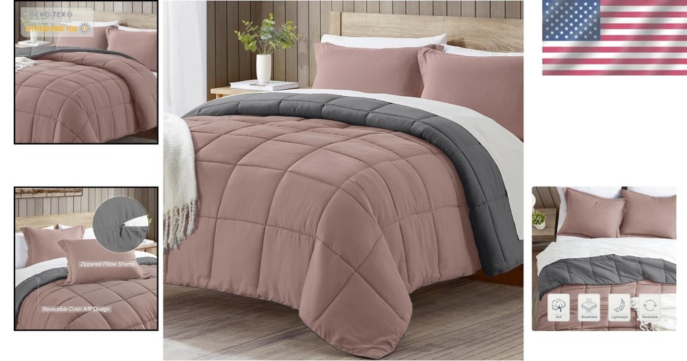 Soft Quilted Full Size Pink & Grey Comforter Set - Cozy All-Season Bedding ‹ › ‹ › ‹ › ‹ › ‹ › ‹ › ‹ › ‹ › Soft Quilted Full Size Pink & Grey Comforter Set Cozy All-Season Bedding What You\'ll Get: Full Size Comforter: Measuring 82" by 86" - perfect for a restful night’s sleep. Matching Pillow Sham: 20" by 26" with a chic 2-inch flange and an invisible zipper for easy closure. Reversible Design: Transform your bedroom effortlessly with this stylish comforter set! With a vibrant pink vibe on one side and a soothing dark grey on the other, you can effortlessly change your room's aesthetic whenever you desire. Soft & Breathable: Crafted from whole-piece microfiber, the comforter offers an incredibly soft, cozy, and warm touch for any season. The breathable material ensures a dreamy sleep experience, making it feel like snuggling up on a cloud each night. Gift Choice: This down alternative comforter set is OEKO-TEX Standard 100 certified, reflecting a commitment to environmental and social standards. A thoughtful gift for any occasion – Mother\'s Day, birthdays, Christmas, or housewarmings – this set will surely be appreciated! Care Instruction: Keeping your comforter set clean is effortless! Simply toss it in the washer on a gentle cycle with cold water. For drying, either sun-dry it or place it in the dryer on low heat for maintenance that keeps it looking fabulous. Why Choose Our Pink & Grey Comforter Set? Indulge in the elegance and luxury of our Soft Quilted Full Size Comforter Set, where every night promises warmth, comfort, and style. Choose this delightful set to add a touch of luxury to your bedroom decor – your dreams deserve this level of comfort! Shipping Free & Fast Shipping - We offer free shipping to most of the USA with a normal delivery time of 3-7 days. However, due to the current situation, additional delivery time (up to 3 weeks) may be required for some items. Alternative Carriers - We may use alternative carriers (e.g. USPS, FedEx, UPS, etc.) to ensure your package arrives safely and on time. Due to the use of multiple carriers, we are unable to provide a tracking number automatically. Handling Time - Orders are processed and shipped within 1-2 business days of receiving cleared payment. Shipping Restrictions - Shipping to Alaska, Hawaii, Puerto Rico, Guam, and other US territories may incur shipping charges or delivery restrictions. Please contact us before ordering, or your order can be refunded/cancelled. State Restrictions - There may be restrictions based on your state of purchase. For example, certain items may not be shipped to California due to state regulations. Contact for Tracking Updates - If you require tracking updates or have any concerns about the delivery of your order, please feel free to contact us, and we will be happy to assist you. Return 30-Day Hassle-Free Returns - We want you to be completely satisfied with your purchase. If you are not, you can return the item within 30 days of receiving it for a full refund or exchange. Easy Return Process - To start a return, simply contact us and we will provide you with a prepaid return shipping label and detailed instructions. Restocking Fee - There are no restocking fees for returns. However, the buyer is responsible for return shipping costs if the return is not due to a seller's error. Refund Processing Time - Refunds will be processed within 5 business days of receiving the returned item in its condition. Payment We accept all major credit cards, PayPal, and Apple Pay for your convenience. Your payment information is secure and encrypted to ensure a safe and seamless transaction. Please complete your payment within 3 days of purchase to avoid any delays in shipping. Feedback Your feedback is extremely important to us. We strive to provide the best products and customer service possible. If you are satisfied with your purchase, please take a moment to leave us a positive review. If you have any concerns or issues with your order, please contact us before leaving negative feedback. We are committed to resolving any problems and ensuring your satisfaction. Contact Us If you have any questions or concerns, please feel free to out to our customer support team. You can contact us through the eBay messaging system. We are available Monday to Friday, 9:00 am to 5:00 pm EST, and we will do our best to respond to your inquiry within 24 hours. Buy it now and enjoy a pleasant shopping experience! Set Includes: Comforter,Pillow Sham Material: Microfiber,Brushed Microfiber Features: Breathable,Down Alternative,Quilted,Reversible,Soft Theme: Seasonal Care Instructions: Machine Wash,Machine Wash Cold,Gentle Cycle Department: Unisex Baby & Toddler,Kids,Teens,Adults Room: Bedroom Size: Full Type: Comforter Set Color: Pink Fill Material: Microfiber Pattern: Plaid Insulation: All Seasons Number of Items in Set: 3 Style: Modern Season: All Closure Type: Zip Thread Count: 200 or Less GSM (Grams per Square Meter): 150 to 300