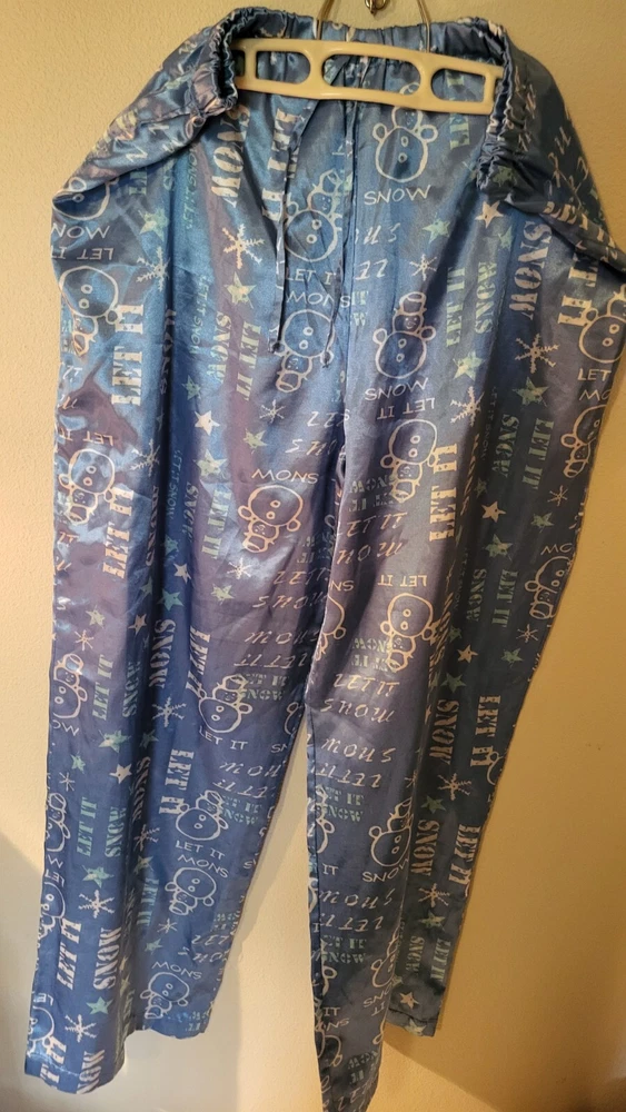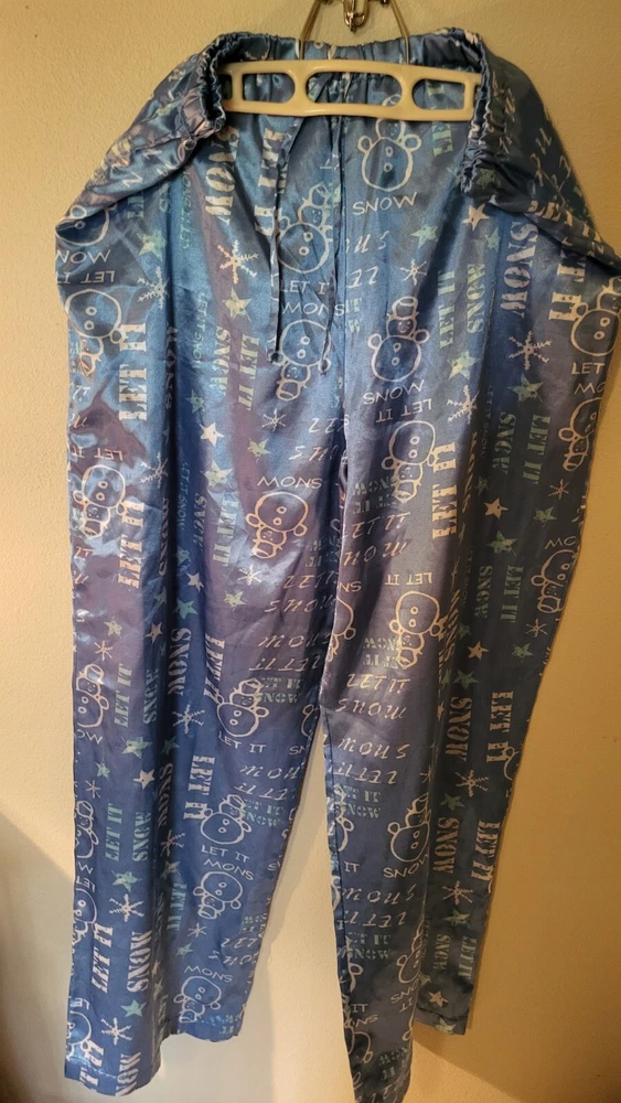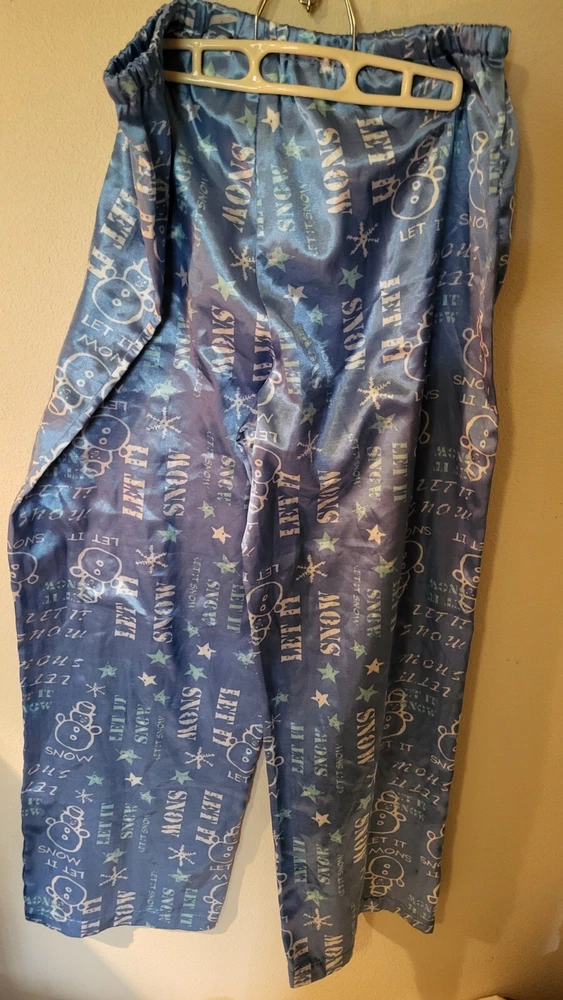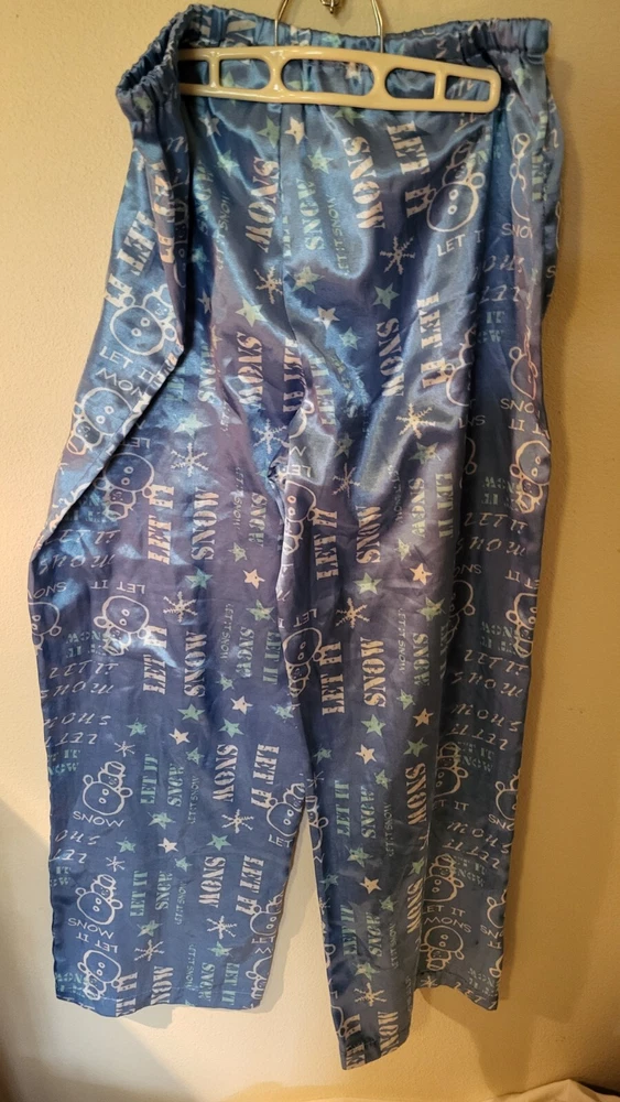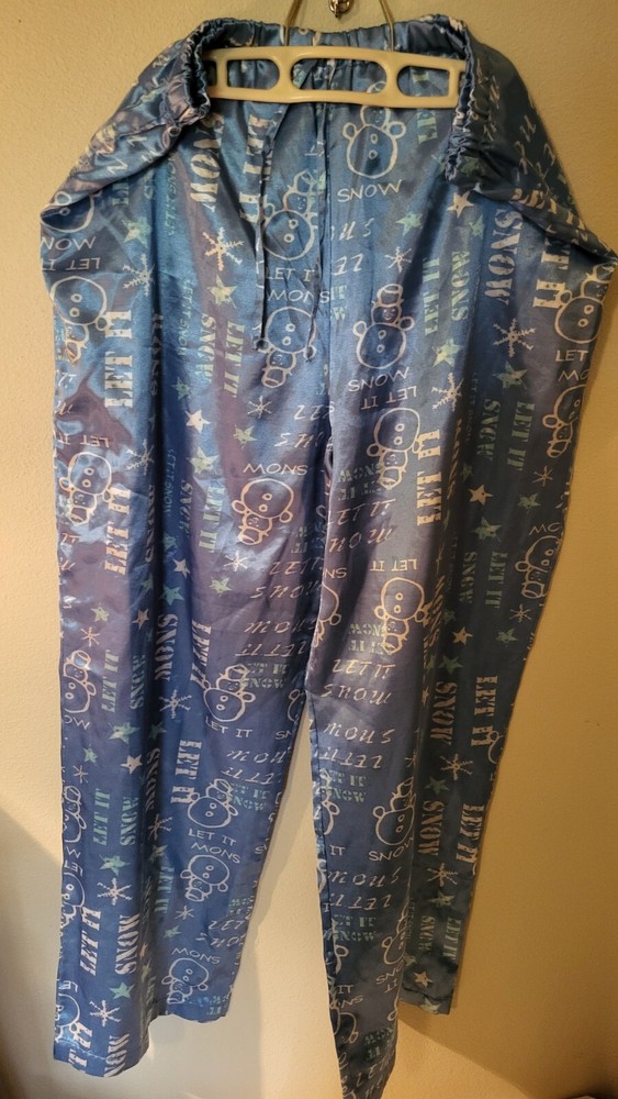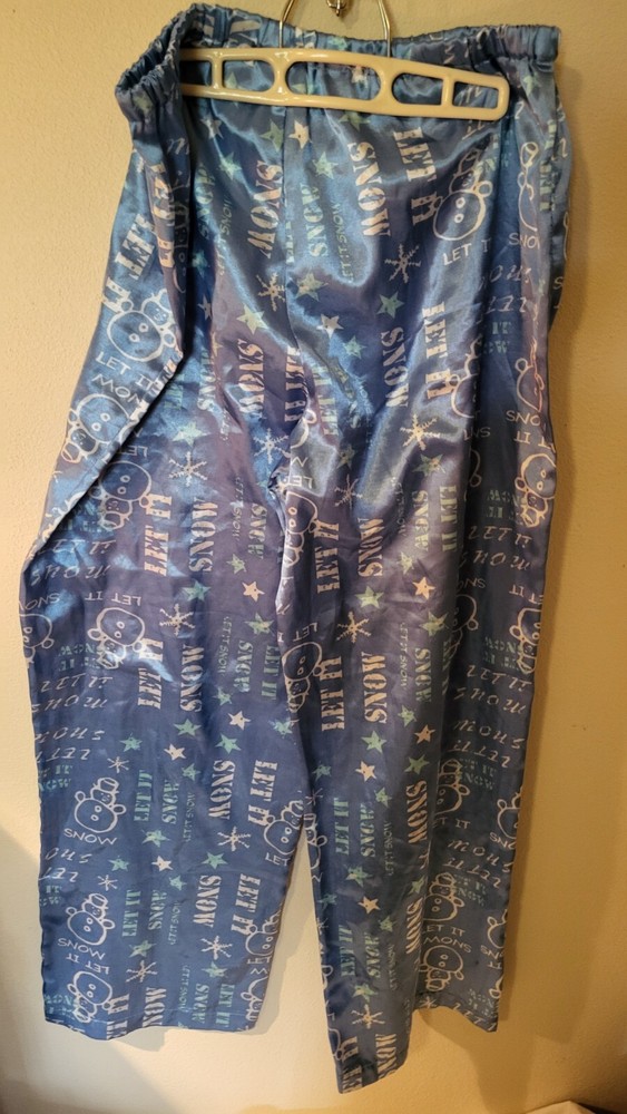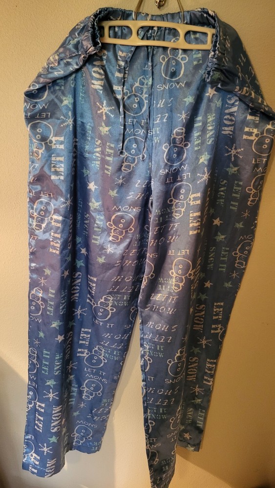 y2kStay cozy and stylish all year round with these Soft Sensations women's lounge pants. The XL size and elastic waist closure ensure a comfortable fit, while the lightweight and machine washable fabric make them easy to care for. The shiny cozy inside and winter snowman pattern add a touch of fun to these blue PJ pants, perfect for wearing in any season. Made with a polyester cotton blend, these lounge pants are perfect for anyone looking for a soft and comfortable option.