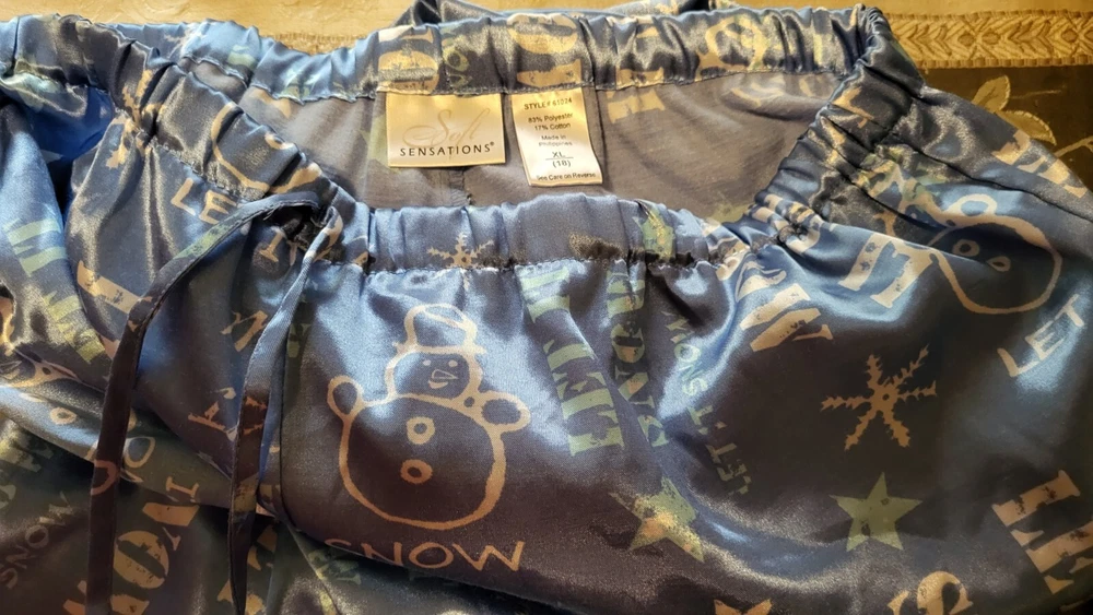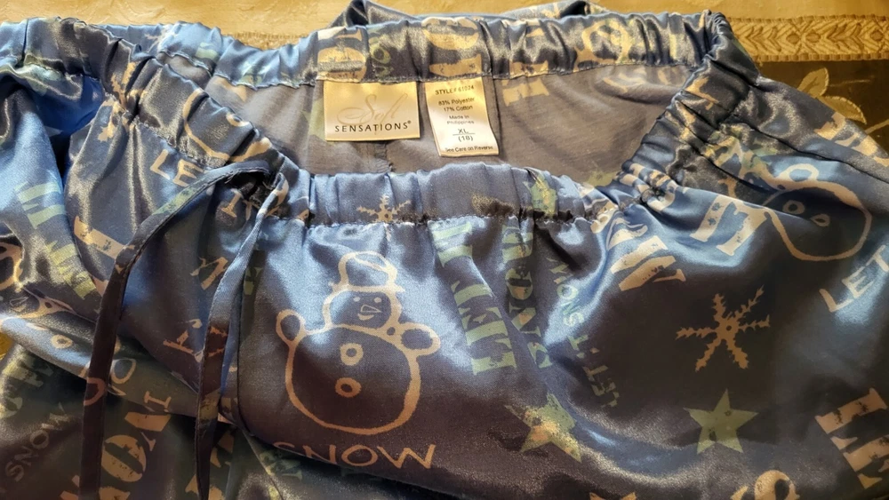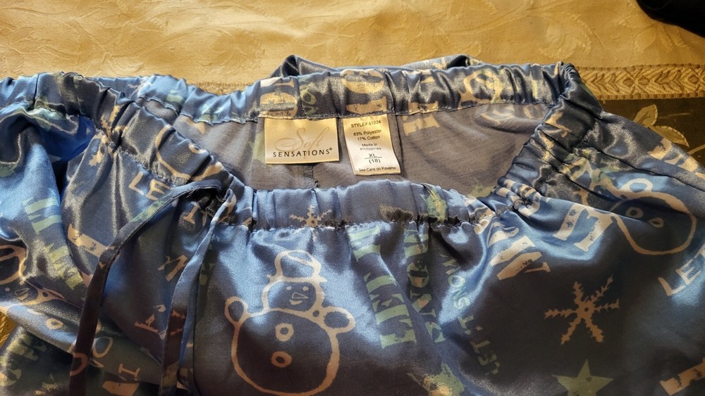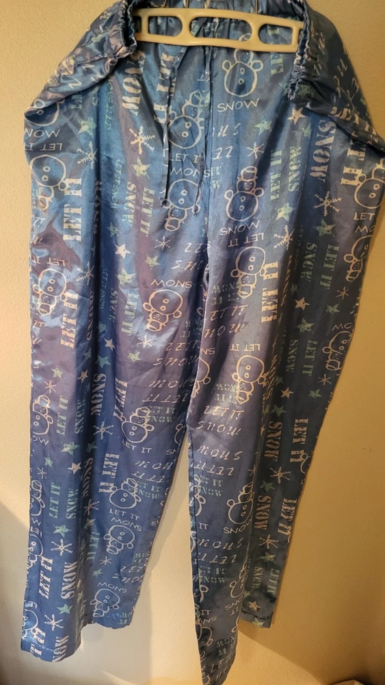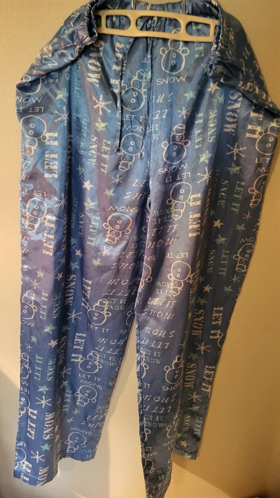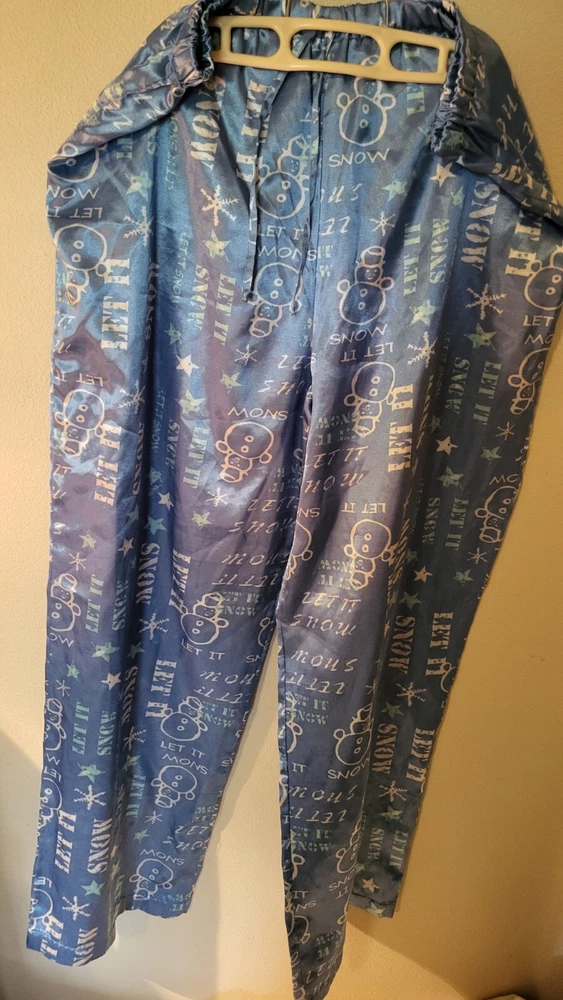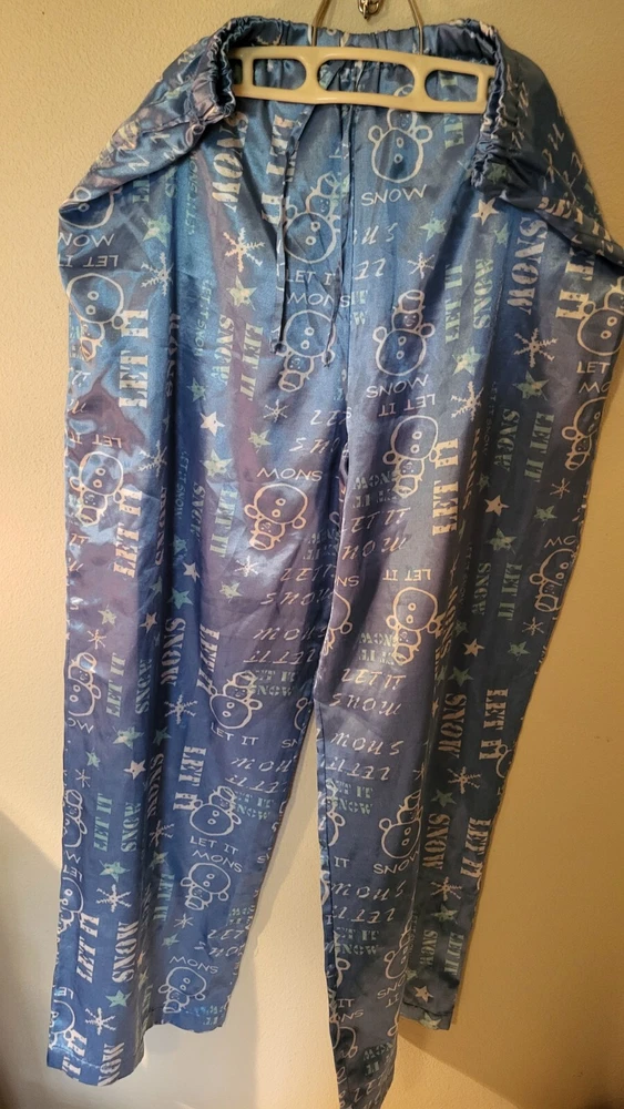 y2kStay cozy and stylish all year round with these Soft Sensations women's lounge pants. The XL size and elastic waist closure ensure a comfortable fit, while the lightweight and machine washable fabric make them easy to care for. The shiny cozy inside and winter snowman pattern add a touch of fun to these blue PJ pants, perfect for wearing in any season. Made with a polyester cotton blend, these lounge pants are perfect for anyone looking for a soft and comfortable option.