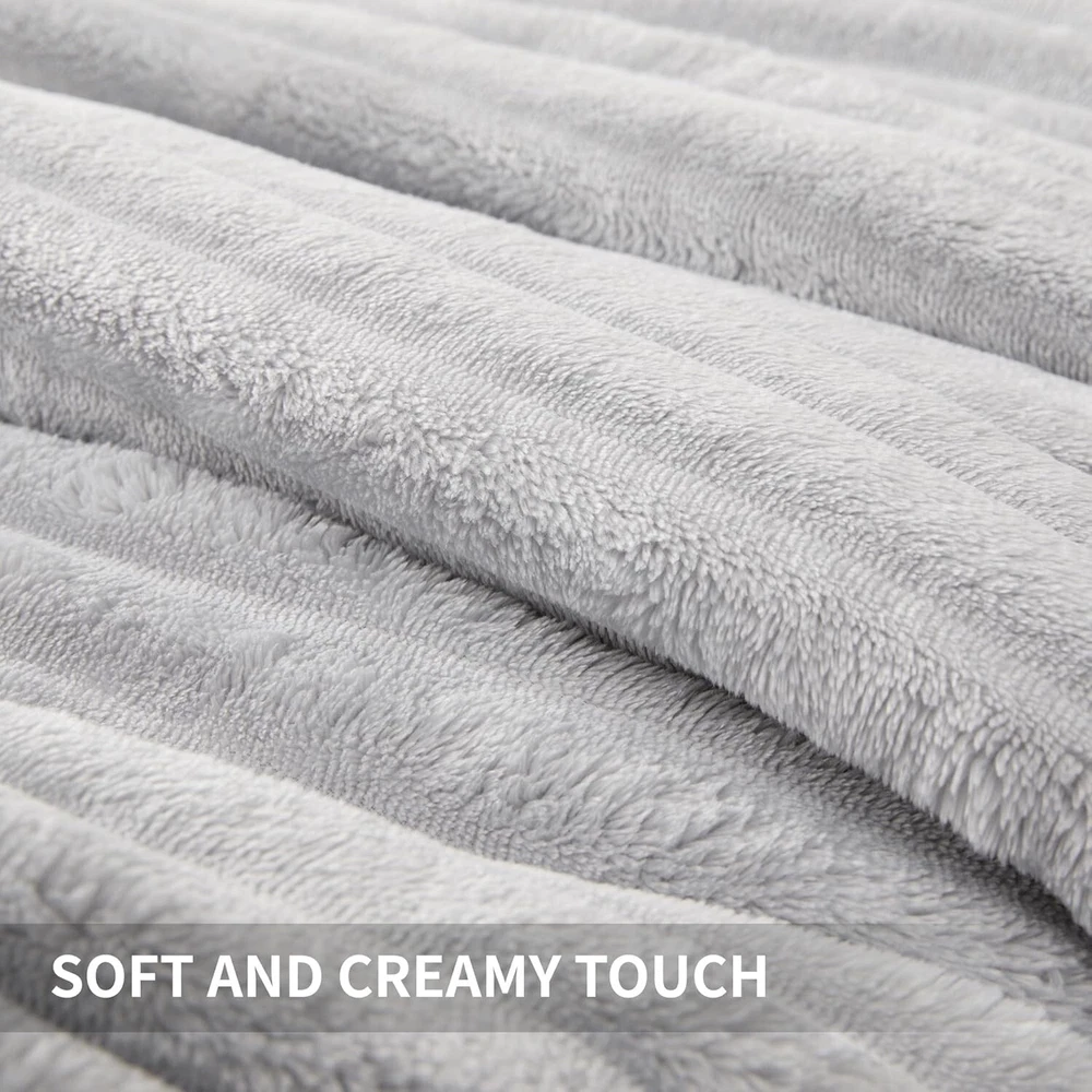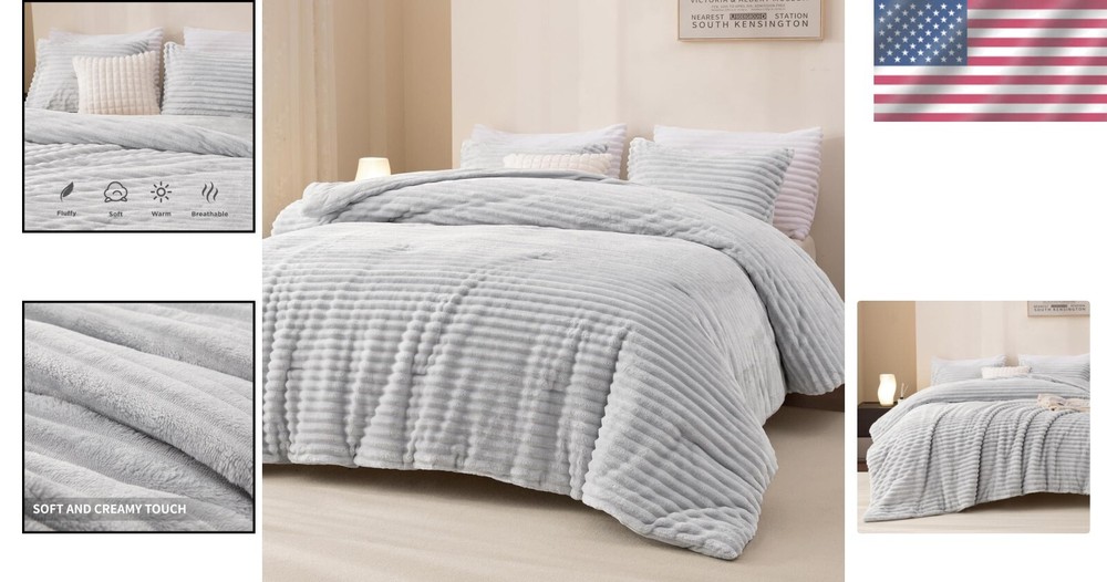 This comforter set is a dream for cold nights—super soft, warm, and cozy with its fluffy flannel and smooth velvet sides. The light gray stripes add a stylish touch, and it feels like wrapping up in a cloud. Perfect for staying toasty all winter!