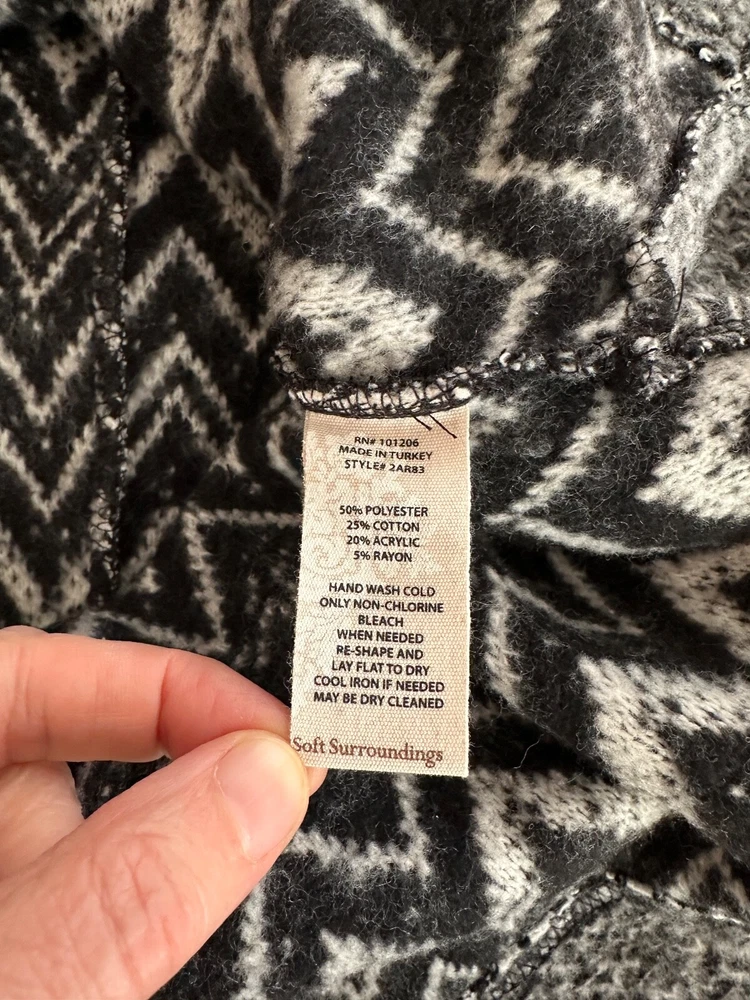 Condition: No flaws, NWT. (for my condition definitions, please scroll to the bottom of this page) Fabric content: see photos Measurements are taken with the garment laying flat and unstretched. Comparing these measurements to a similar garment that fits you well, is a good way to help determine fit. Fabric has some stretch/give. Total Length - Shoulder to bottom of hem. 27" Chest - Measured armpit to armpit. 23" Sleeve Length - cowl neck seam to cuff. 25" ------------------------ Color: I try to photograph the items as accurately as possible, using filtered sunlight with no flash, but please keep in mind that colors may vary, depending on your monitor and the light in which the garment is viewed. ------------------------ All of my merchandise is kept in my pet-free, smoke-free, office and storage area. ------------------------- I have done my best to accurately describe this item, but occasionally I might miss something. Should something not be as it was described in the listing, please contact me so that I can have a chance to make things right. Happy customers and positive feedback are very important to me. :-) ------------------------- CLOTHING CONDITION GUIDE NWT = New With Tags, manufacturers hang tags are still attached and garment has never been washed or worn. NWOT = New Without Tags, manufacturers hang tags have been removed, but the garment has not been washed or worn. LIKE NEW = Appears new, no signs of wear, may have been worn once. EXCELLENT = Previously worn, with only very slight signs of wear. VERY GOOD = Previously worn with moderate signs of wear and/or fade. GOOD = Previously worn with significant signs of wear and/or fade.