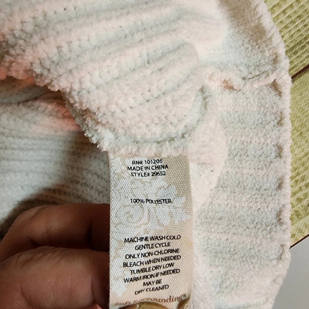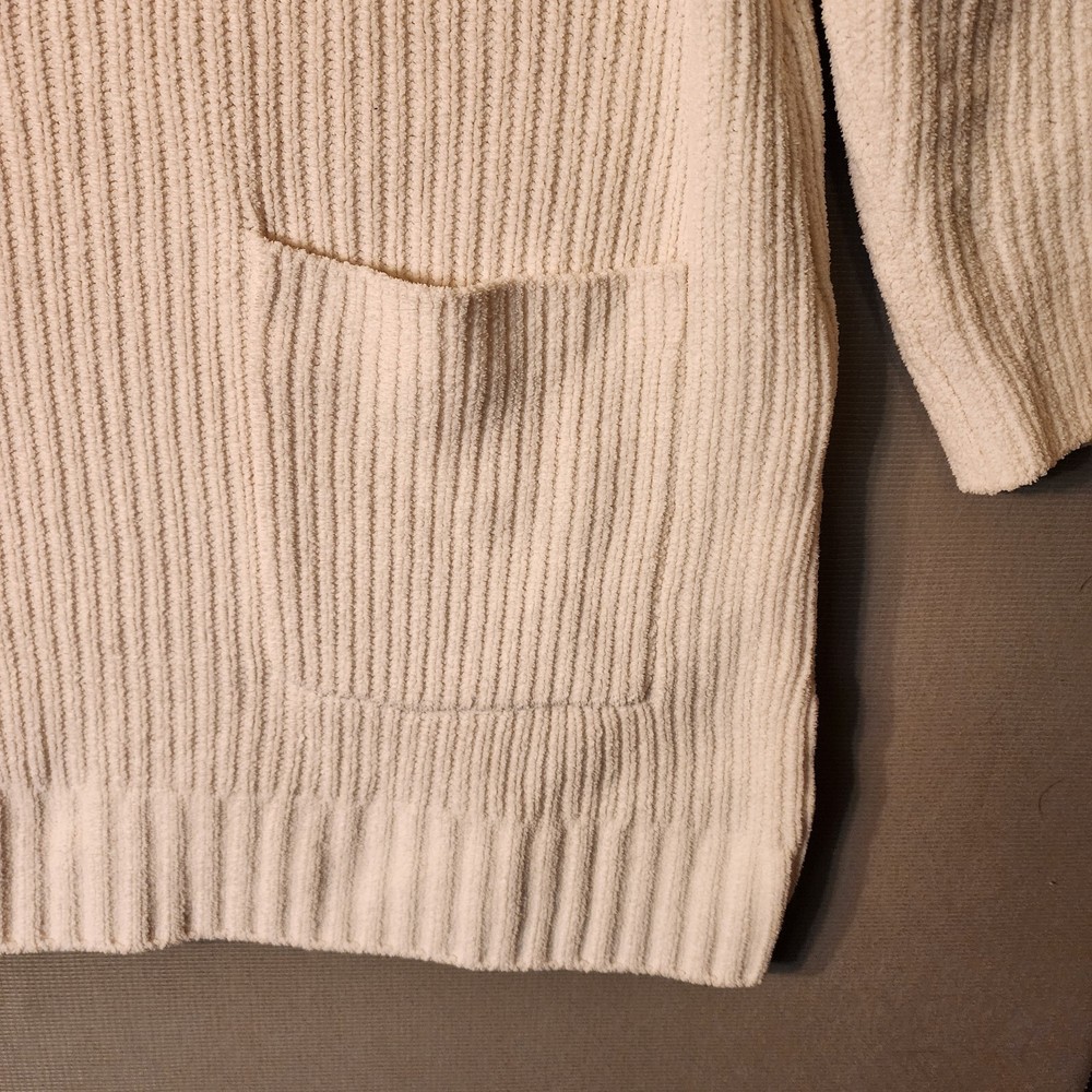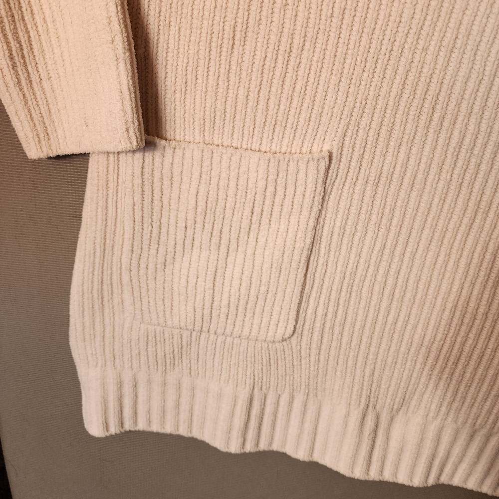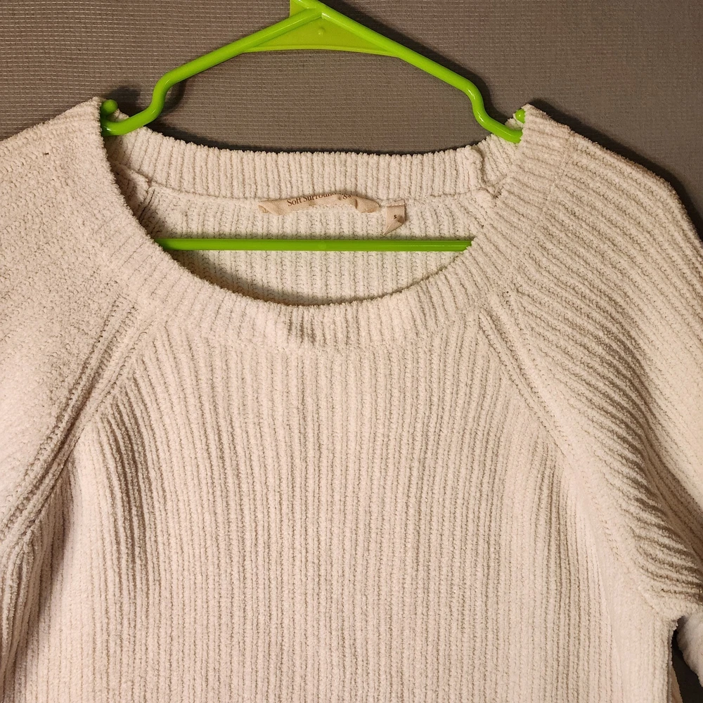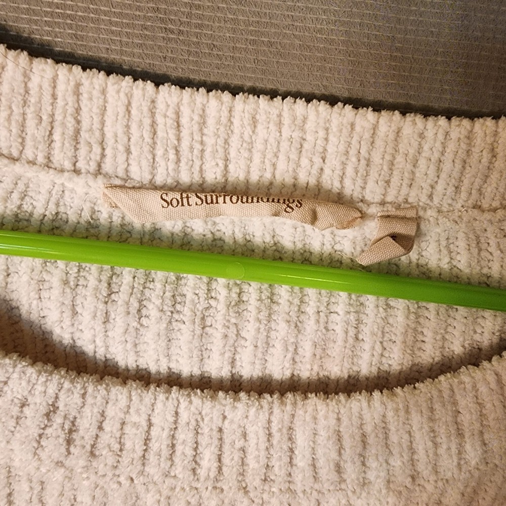 This Soft Surroundings sweater is perfect for the winter season! It features a round neckline, long sleeves, and tight-knit polyester material that will keep you cozy and warm. The ivory color is a great neutral that can be paired with many different outfits. This pullover sweater also includes pockets, perfect for holding small items or keeping your hands warm. It's a great addition to any loungewear collection, and can be worn both indoors and outdoors. Whether you're running errands or enjoying a winter walk, this sweater is sure to keep you comfortable and stylish.
