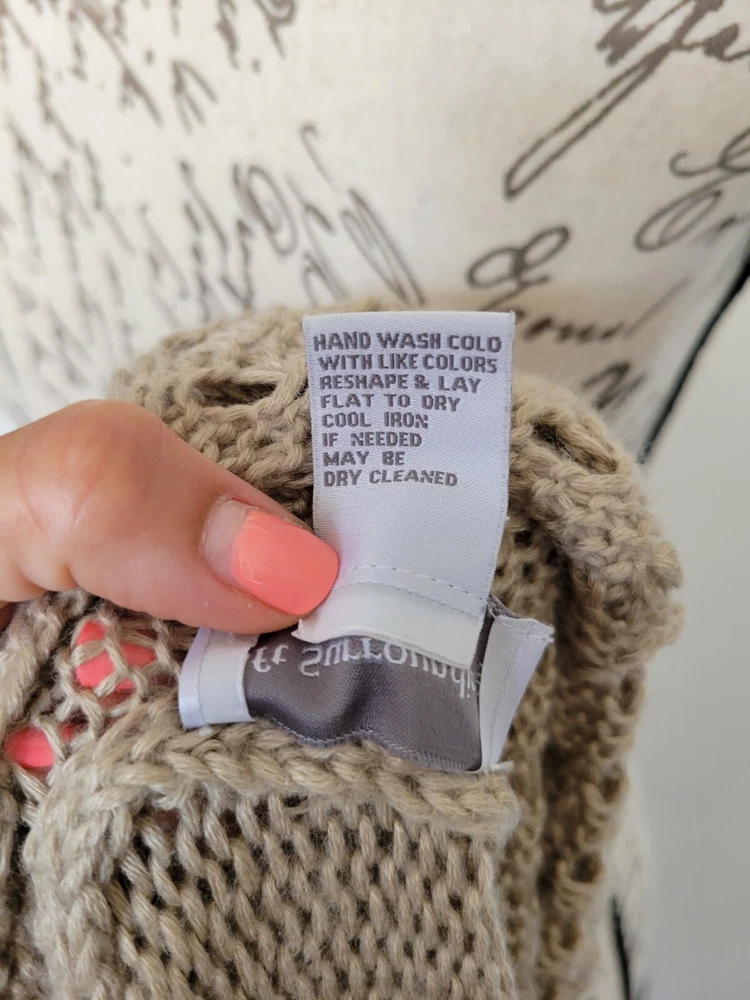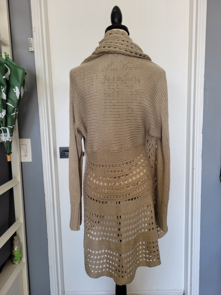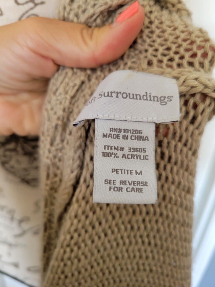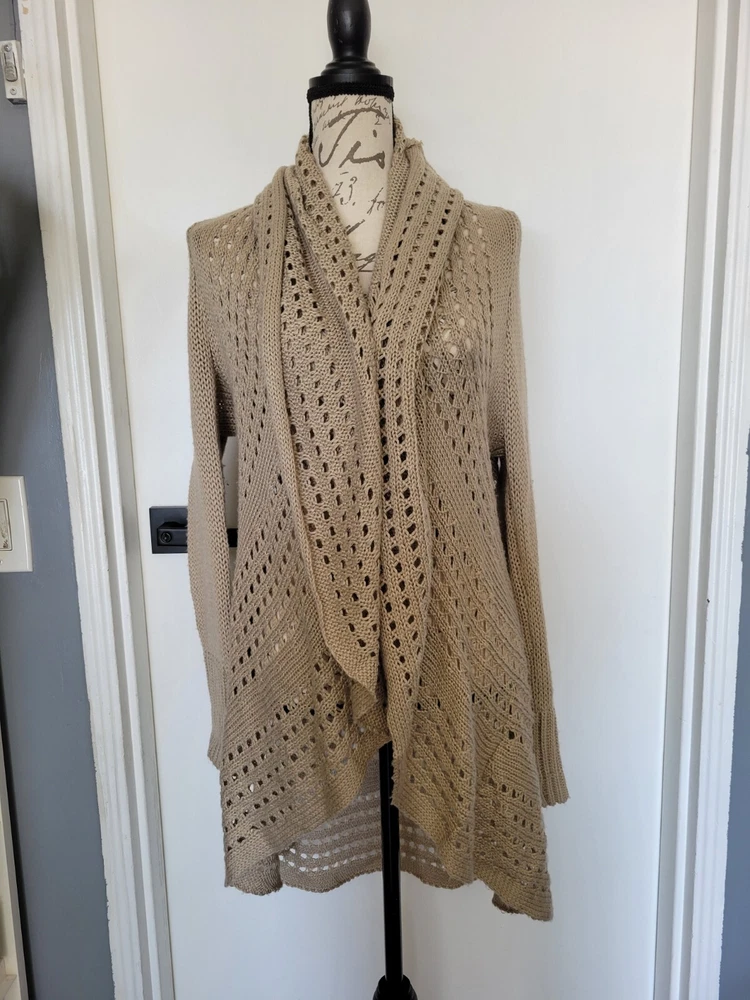 Soft Surroundings Cozy Long Perforated Open Front Cardigan Sweater Size Petite M acrylic Excellent pre owned conditions Super soft and cozy! Shawl style round collar, long silhouette, gives effortless, boho vibes Smoke free cat friendly home Bin F tags: casual, boho, bohemian, contemporary, autumn, winter, foliage, streetwear, travel, vacation, resort, pullover, relax, coastal, holiday, classic, layer, luxury, modern, neutral, comfy, comfortable, warm, anthro, quiet luxury, hippie, city, urban, coastal grandma, coastal cowgirl, cottage, cottagegore, cottagecore, fairy, fairycore, retro, cozy