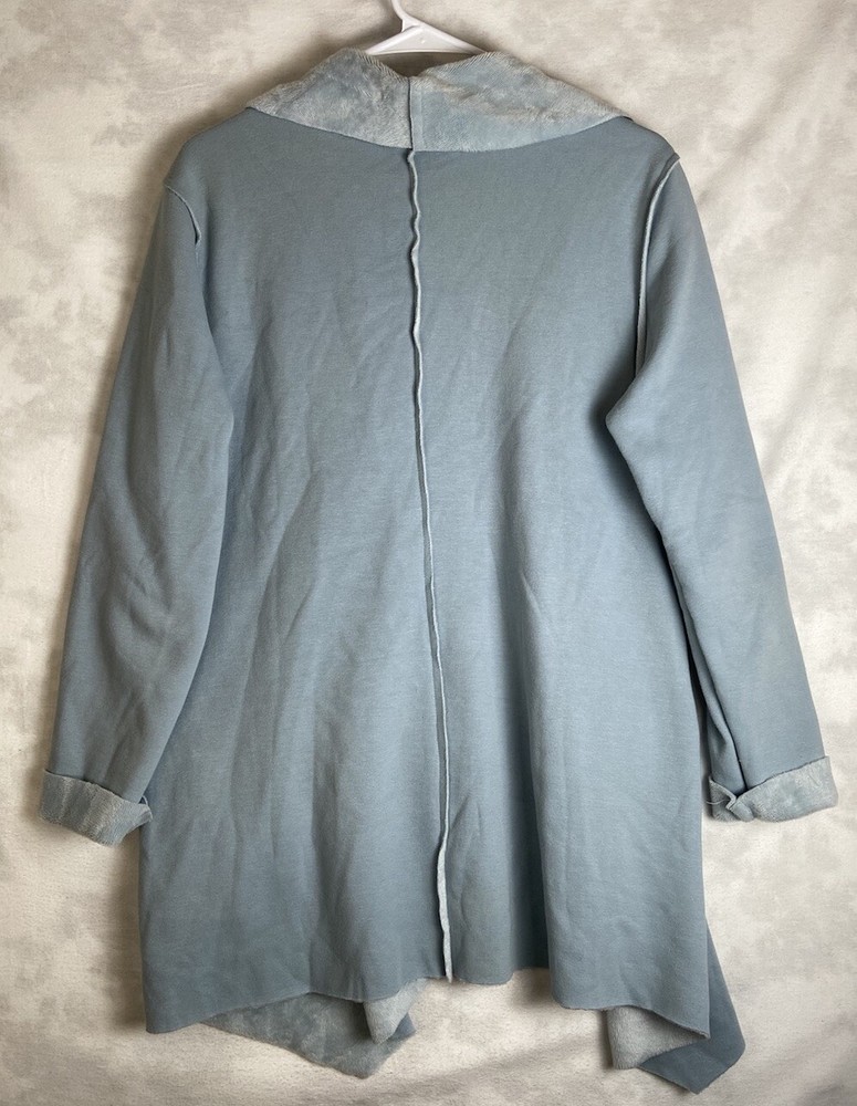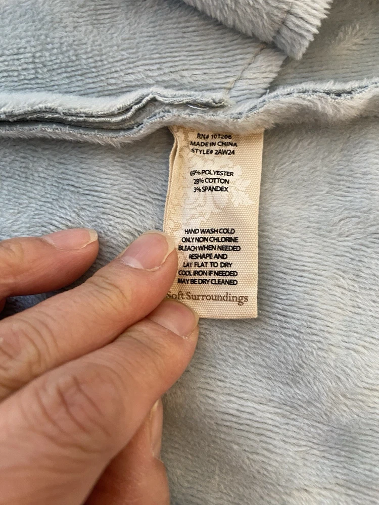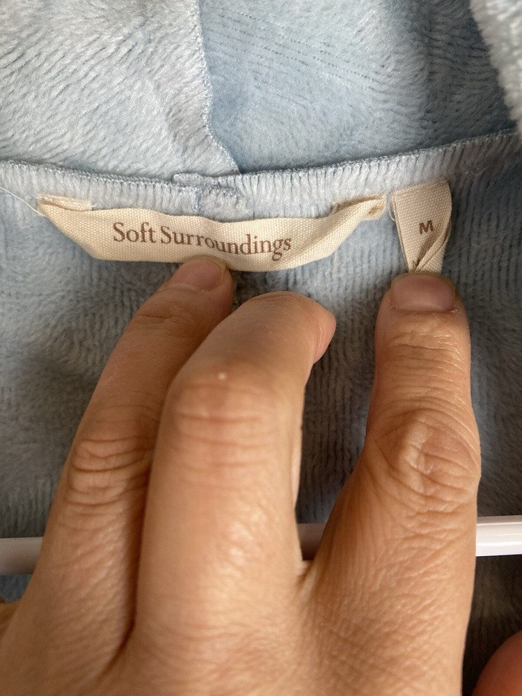 This Soft Surroundings jacket in size M is the perfect addition to your wardrobe. The sky blue color and basic jacket style make it versatile for any occasion. The jacket is made of polyester and features a faux fur lining for added warmth and comfort. With the brand name Soft Surroundings, you know that this jacket is made with high-quality materials and designed for comfort. It is perfect for women who want to stay cozy and stylish. Whether you're dressing up for a night out or running errands, this jacket is a must-have.