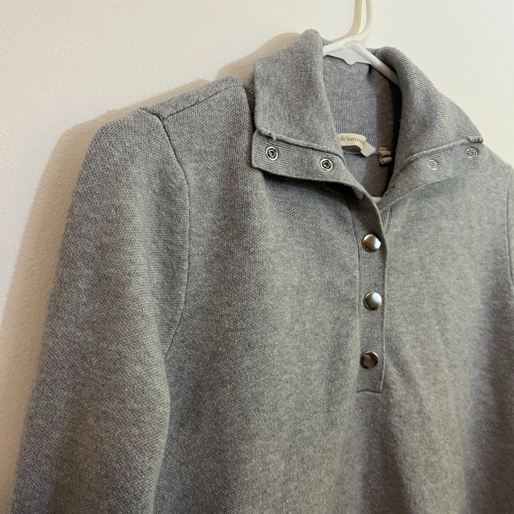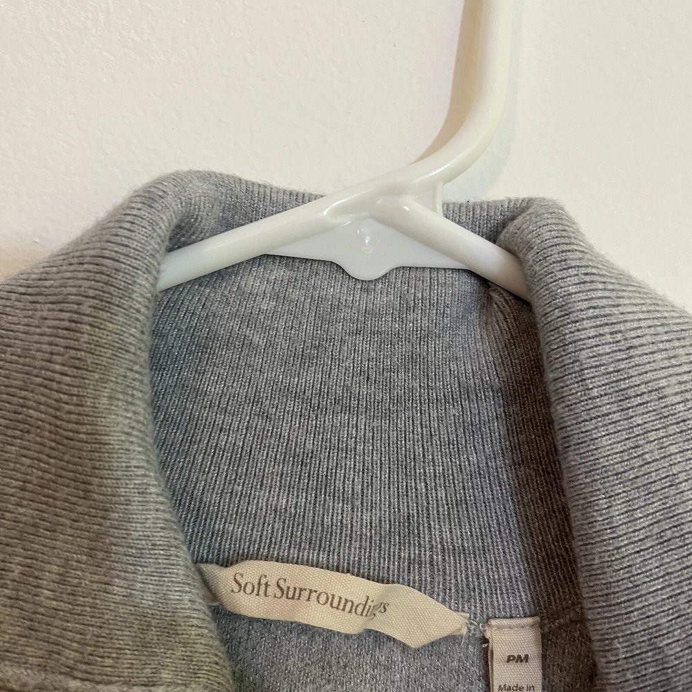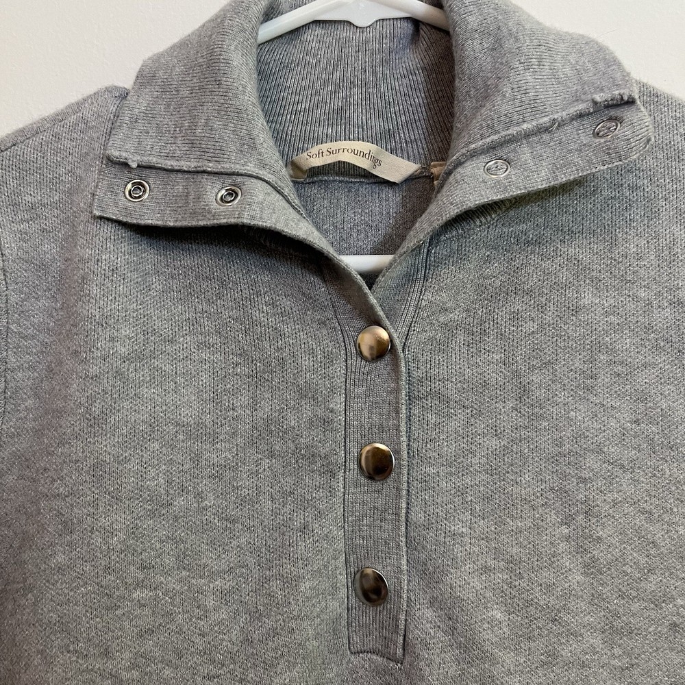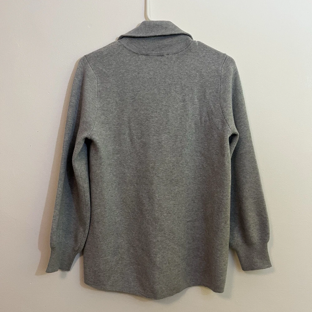 This is the coziest sweater! The fabric tag is missing, it feels honestly cashmere-ey to me but I could be wrong! But it is a very nice substantial and soft sweater! Bust: 36” Waist: 38” Length: 24”...