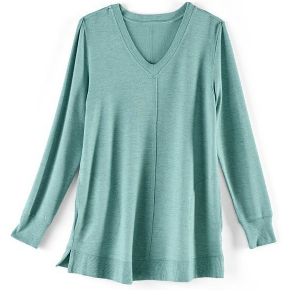 <![CDATA[<div>Soft Surroundings Women Small Blue Teal "Seista Soft Tunic" Top Soft Surroundings Women Small Blue Teal Green Color-- V-neck, Long Sleeve, Pockets, Tunic Length Top Excellent Preowned Condition- No Flaws Style#2BR58 Materials: 76% Viscose; 19% Polyester; 5% Spandex Measurements (laying flat) Pit to pit-19 inches; Length-28 inches Tags: Comfort, Cozy, Normcore, Classic, Soft 188