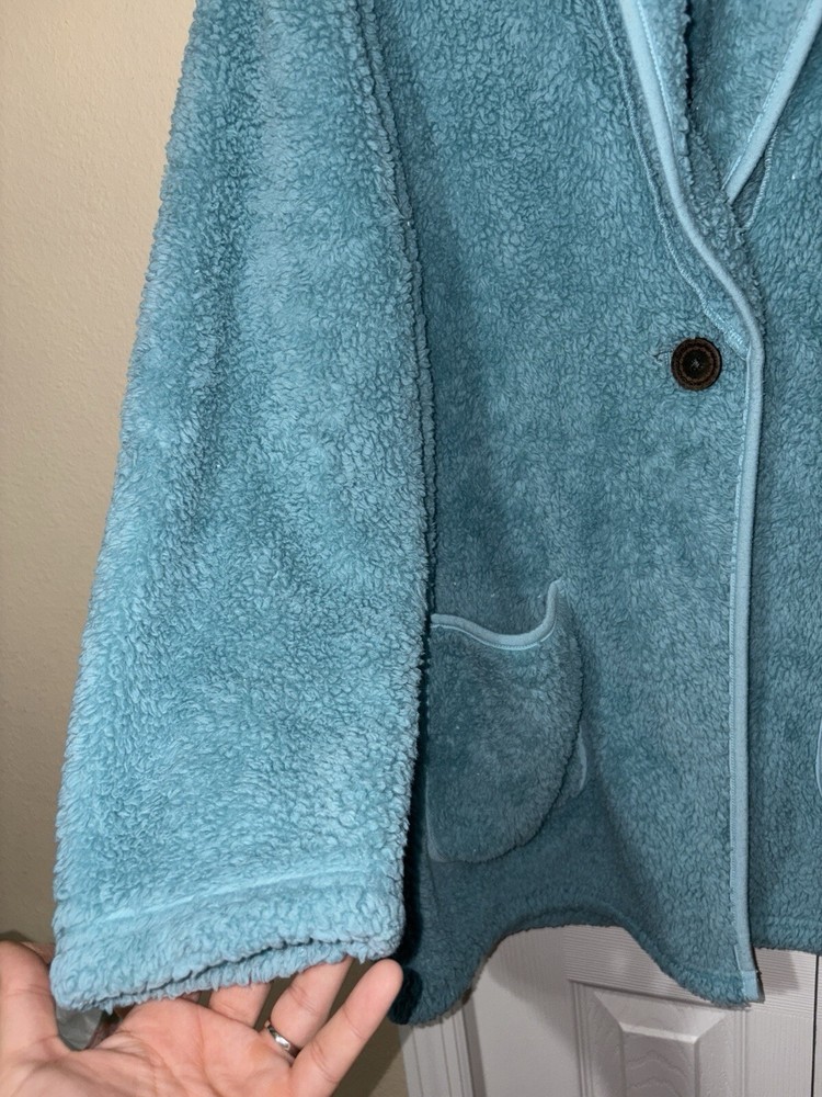 Soft Surroundings Women’s Medium Cozy Robe Plush Sweater Cardigan Teal