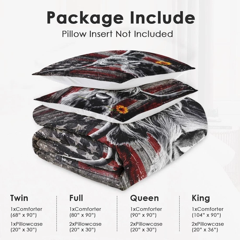 Soft and Cozy King Size Bedding Set - Vibrant Highland Cow & American Flag ‹ › ‹ › ‹ › ‹ › ‹ › ‹ › ‹ › ‹ › ‹ › Soft and Cozy King Size Bedding Set Vibrant Highland Cow & American Flag Design Features: Exceptionally Soft & Cozy: Luxurious comfort with microfiber fabric filled with polyester for -round coziness. King Size Set: Generously-sized comforter measuring 104" x 90" with 2 pillowcases (20" x 36") included. (Pillow inserts not included) Masterfully Crafted: Meticulously constructed with precise stitching for long-lasting durability, enhanced with HD digital printing for vibrant designs. Effortless Care: Machine wash cold on gentle cycle, tumble dry on low for a fresh appearance. Avoid bleach to protect vivid colors. Versatile & Travel-Friendly: Ideal for home use, guest rooms, dormitories, RVs, or vacation residences. Lightweight and portable for on-the-go comfort. Benefits: Unmatched softness ensures a luxurious sleep experience. Vibrant designs create an inviting atmosphere in any bedroom. Durable construction promises longevity in both use and design. Easy to care for, allowing for worry-free maintenance. Perfect for various environments – enhance your personal space or provide hospitality in guest areas. Why choose our Soft and Cozy Bedding Set? Transform your sleeping experience with our Soft and Cozy King Size Bedding Set, beautifully adorned with a vibrant Highland Cow and American Flag design. Indulge in the luxurious softness of microfiber and enjoy the generously-sized comforter that promises undisturbed sleep on any occasion. Crafted with precision and detailed care, our bedding set enhances not only your personal comfort but also the decor of your living space. Lightweight and travel-friendly, it is as adaptable as your lifestyle, perfect for both everyday use and special getaways. Choose style, comfort, and quality – elevate your bedding experience today with our exquisite Soft and Cozy Bedding Set! Shipping Free & Fast Shipping - We offer free shipping to most of the USA with a normal delivery time of 3-7 days. However, due to the current situation, additional delivery time (up to 3 weeks) may be required for some items. Alternative Carriers - We may use alternative carriers (e.g. USPS, FedEx, UPS, etc.) to ensure your package arrives safely and on time. Due to the use of multiple carriers, we are unable to provide a tracking number automatically. Handling Time - Orders are processed and shipped within 1-2 business days of receiving cleared payment. Shipping Restrictions - Shipping to Alaska, Hawaii, Puerto Rico, Guam, and other US territories may incur shipping charges or delivery restrictions. Please contact us before ordering, or your order can be refunded/cancelled. State Restrictions - There may be restrictions based on your state of purchase. For example, certain items may not be shipped to California due to state regulations. Contact for Tracking Updates - If you require tracking updates or have any concerns about the delivery of your order, please feel free to contact us, and we will be happy to assist you. Return 30-Day Hassle-Free Returns - We want you to be completely satisfied with your purchase. If you are not, you can return the item within 30 days of receiving it for a full refund or exchange. Easy Return Process - To start a return, simply contact us and we will provide you with a prepaid return shipping label and detailed instructions. Restocking Fee - There are no restocking fees for returns. However, the buyer is responsible for return shipping costs if the return is not due to a seller's error. Refund Processing Time - Refunds will be processed within 5 business days of receiving the returned item in its condition. Payment We accept all major credit cards, PayPal, and Apple Pay for your convenience. Your payment information is secure and encrypted to ensure a safe and seamless transaction. Please complete your payment within 3 days of purchase to avoid any delays in shipping. Feedback Your feedback is extremely important to us. We strive to provide the best products and customer service possible. If you are satisfied with your purchase, please take a moment to leave us a positive review. If you have any concerns or issues with your order, please contact us before leaving negative feedback. We are committed to resolving any problems and ensuring your satisfaction. Contact Us If you have any questions or concerns, please feel free to out to our customer support team. You can contact us through the eBay messaging system. We are available Monday to Friday, 9:00 am to 5:00 pm EST, and we will do our best to respond to your inquiry within 24 hours. Buy it now and enjoy a pleasant shopping experience! Set Includes: Comforter,Pillowcase Material: Microfiber,Polyester Features: Breathable,Lightweight Theme: Animal, Landscapes & Seascapes Care Instructions: Do Not Bleach,Machine Wash,Machine Wash Cold,Tumble Dry on Low Heat Department: Unisex Baby & Toddler,Kids,Adults Room: Bedroom,Dormitory,RV,Guest Room Size: King Type: Comforter Set Color: Multicolor Fill Material: Polyester Pattern: Bull, Cow, Highland Insulation: All Seasons Number of Items in Set: 3 Style: Modern Season: All Closure Type: No Closure Thread Count: 401-600
