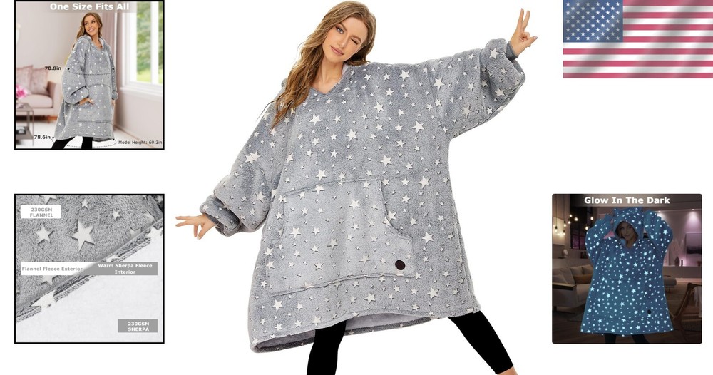Soft and Fuzzy Wearable Blanket Hoodie with Kangaroo Pocket - Machine Washable < class="slides"> ‹ › ‹ › ‹ › ‹ › ‹ › ‹ › ‹ › ‹ › ‹ › Soft and Fuzzy Wearable Blanket Hoodie <> Kangaroo Pocket for warmth and convenience Machine Washable for easy maintenance 100% Polyester for comfort and durability Imported – quality you can trust Warmth and Comfort: Wrap yourself in ultimate comfort with our Soft and Fuzzy Wearable Blanket Hoodie, thoughtfully designed to be 17% longer than similar products on the market, ensuring a cozy fit that allows for maximum leg coverage. This luxurious blanket makes you feel as though you're enveloped in a plush cloud, keeping you warm whether you're at home, camping, or attending a concert. Extremely Safe Material: Crafted with a soft sherpa lining and a lightweight plush microfleece exterior, this hoodie blanket has earned the OEKO-TEX certification, assuring that it is free from harmful chemicals. Experience comfort without compromise, knowing that this blanket is both healthful and non-allergenic. Highly Detailed Design: <> One-Piece Design: Features an oversized fit for maximum mobility. Kangaroo Pocket: Perfect for warming your hands or holding essentials like remotes and phones. Roomy Hood: Keeps your head cozy and warm during chilly weather. Elastic Cuffs: Prevent the wind from chilling your wrists when cooking or strolling outdoors. Easy to Clean and Maintain: Our oversized blanket hoodie is as easy to care for as it is to wear. Toss it in the washing machine or hand wash it as needed, and tumble dry on low heat. Even after multiple washes, this wearable blanket will remain luxuriously soft and snug. Ideal Gift Choice: Looking for the perfect gift for your loved ones? The Cozy Hoodie Blanket is an exceptional choice for any occasion—be it birthdays, anniversaries, or holidays like Mother’s Day, Thanksgiving, and Christmas. This thoughtful gift is sure to bring warmth and affection to friends, family, or coworkers. Indulge in Cozy Luxury Elevate your relaxation experience with our Soft and Fuzzy Wearable Blanket Hoodie. Get yours now and embrace the luxurious warmth that awaits! Shipping <> <> Free & Fast Shipping - We offer free shipping to most of the USA with a normal delivery time of 3-7 days. However, due to the current situation, additional delivery time (up to 3 weeks) may be required for some items. Alternative Carriers - We may use alternative carriers (e.g. USPS, FedEx, UPS, etc.) to ensure your package arrives safely and on time. Due to the use of multiple carriers, we are unable to provide a tracking number automatically. Handling Time - Orders are processed and shipped within 1-2 business days of receiving cleared payment. Shipping Restrictions - Shipping to Alaska, Hawaii, Puerto Rico, Guam, and other US territories may incur shipping charges or delivery restrictions. Please contact us before ordering, or your order can be refunded/cancelled. State Restrictions - There may be restrictions based on your state of purchase. For example, certain items may not be shipped to California due to state regulations. Contact for Tracking Updates - If you require tracking updates or have any concerns about the delivery of your order, please feel free to contact us, and we will be happy to assist you. Return <> <> 30-Day Hassle-Free Returns - We want you to be completely satisfied with your purchase. If you are not, you can return the item within 30 days of receiving it for a full refund or exchange. Easy Return Process - To start a return, simply contact us and we will provide you with a prepaid return shipping label and detailed instructions. Restocking Fee - There are no restocking fees for returns. However, the buyer is responsible for return shipping costs if the return is not due to a seller's error. Refund Processing Time - Refunds will be processed within 5 business days of receiving the returned item in its condition. Payment We accept all major credit cards, PayPal, and Apple Pay for your convenience. Your payment information is secure and encrypted to ensure a safe and seamless transaction. Please complete your payment within 3 days of purchase to avoid any delays in shipping. Feedback Your feedback is extremely important to us. We strive to provide the best products and customer service possible. If you are satisfied with your purchase, please take a moment to leave us a positive review. If you have any concerns or issues with your order, please contact us before leaving negative feedback. We are committed to resolving any problems and ensuring your satisfaction. Contact Us If you have any questions or concerns, please feel free to out to our customer support team. You can contact us through the eBay messaging system. We are available Monday to Friday, 9:00 am to 5:00 pm EST, and we will do our best to respond to your inquiry within 24 hours. Buy it now and enjoy a pleasant shopping experience! Unit Quantity: 3.52 Material: Polyester,Sherpa lining,Microfleece exterior Features: Machine Washable,Glow in the Dark,Oversized Design,Warm and Cozy,Soft and Fuzzy,Kangaroo Pocket,Roomy Hood,Elastic Cuffs Care Instructions: Machine Wash,Tumble Dry Department: Kids,Adults,Unisex Room: Bedroom,Living Room Size: Oversized Type: Wearable Blanket Hoodie Color: Glow in the Dark Style: Contemporary Shape: Rectangular Insulation: Warm Closure Type: No Closure GSM (Grams per Square Meter): Over 800 Thread Count: 200 or Less Unit Type: lb