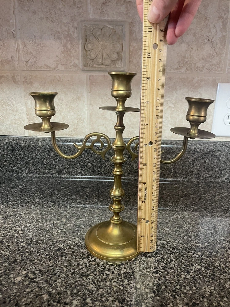 This solid brass triple candelabra is absolutely stunning—the craftsmanship shines through in every detail. The vintage patina adds character, and the 10” x 9.25” size makes it a perfect statement piece. Even though it’s preowned, it’s in excellent condition with just a bit of residual polish, which actually highlights its authenticity. The seller is thoughtful, offering combined shipping and eco-friendly packaging, plus they pack everything with great care. A gorgeous, high-quality find with real charm!