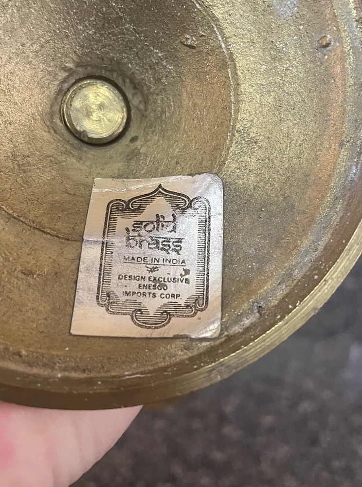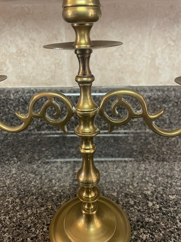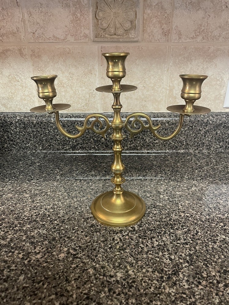 Enesco Imports Solid Solid Brass Candlestick Triple Candelabra 10 x 9.25” Made In India Preowned very good vintage condition Has a little remnants of polishing cream in some crevices. I have not cleaned or polished it. I WILL COMBINE SHIPPING ON MULTIPLE ITEMS IF YOU CONTACT ME PRIOR TO MAKING PAYMENT I use recycled packing materials whenever possible. Nevertheless I take great care in packing your item to do my best for it to arrive in the same condition as when it leaves me. I do my best to look over each item carefully to ensure I am describing as best as possible. The photos are a part of the description- so please look at all photos. Feel free to ask questions. I want you to be happy with your purchase. I will leave positive feedback as soon as payment is received & I have shipped your item. Please do the same if you are satisfied once you have received your item. I strive for 100% customer service so if there is a problem please contact me. Check out my other listings and follow! Thanks for looking !