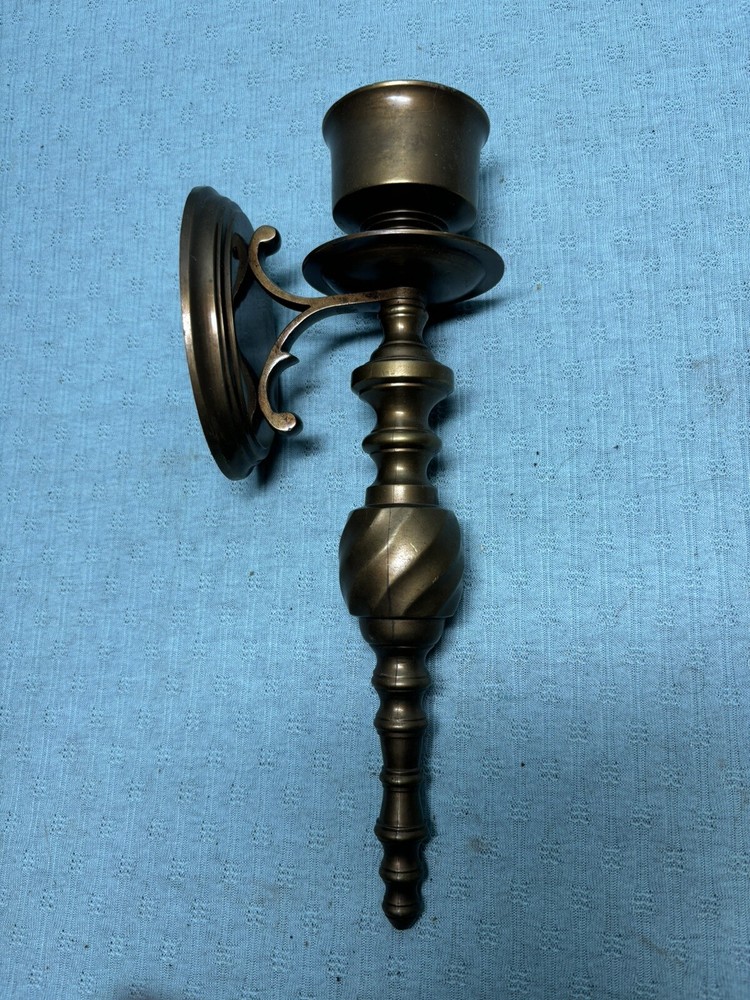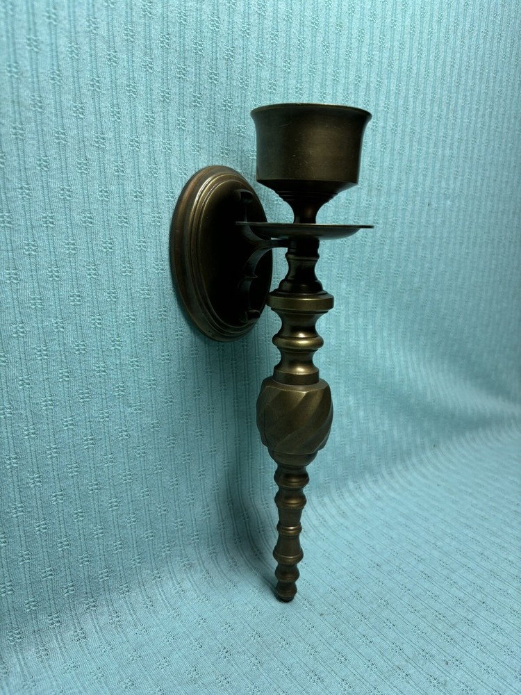Solid Brass Wall Mount Candle Holder Sconces Candlestick made by Pier 1 Imports in excellent condition. Measures 9 3/4” tall. No tarnishing or signs of use.