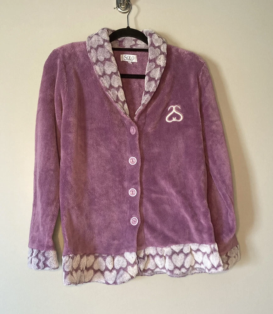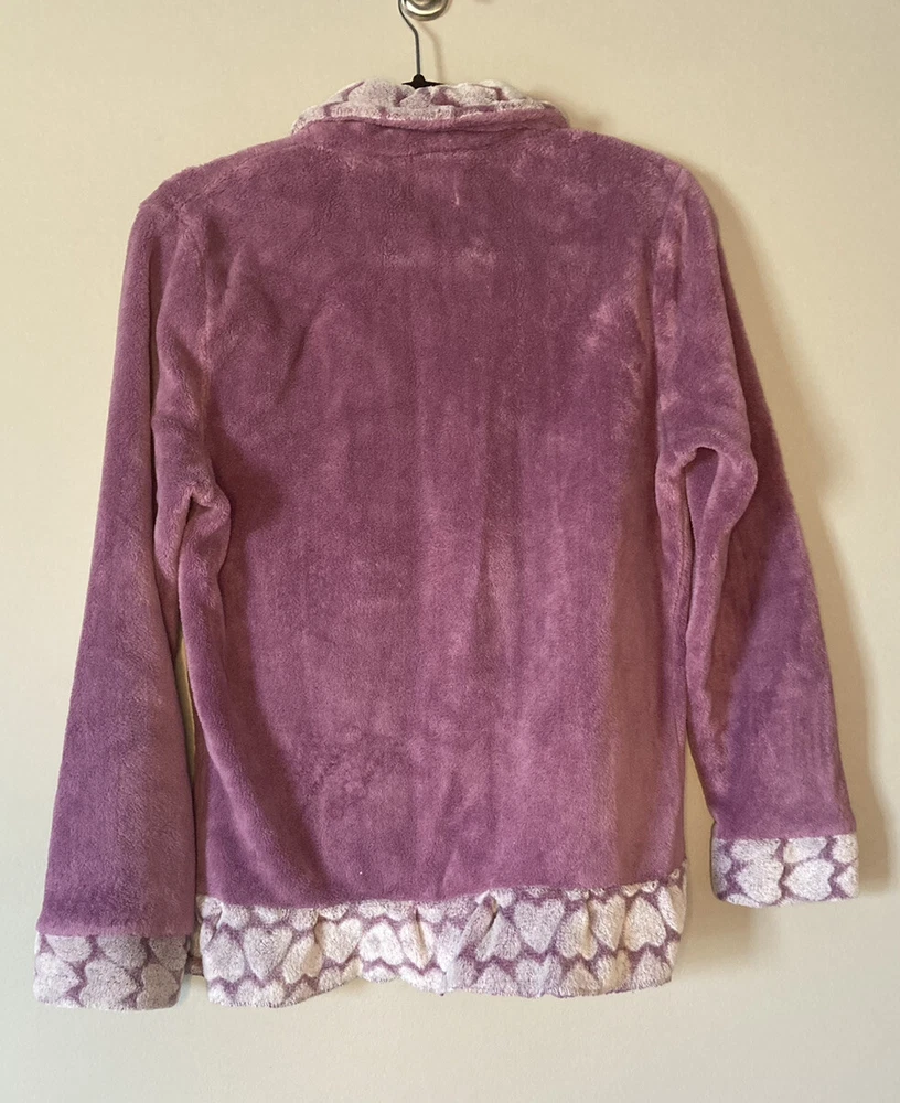 Solo Soprani Plush Pajamas L Purple Heart Ruffle Cozy Loungewear. Very good condition Measurements Top 21” pit to pit, 25” top to bottom, Pants 14” across, 10 rise, 28” inseam All measurements are flat lay and approximate