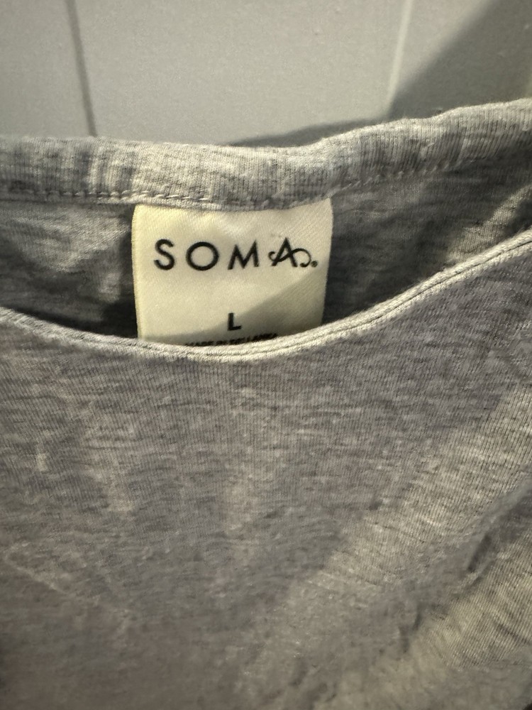 The Soma COOL NIGHTS Solid Grey Pajama Sleep Cami top is a stylish and comfortable option for women looking for a blend of sexy and soft sleepwear. This tank top features a V-neckline and is designed with a built-in bra for added support. The solid grey color and classic design make it a versatile piece that can be worn for any occasion, whether you're lounging at home or sleeping. The size Large ensures a comfortable fit, while the cool and cozy theme makes it perfect for a good night's rest. Built in bra Preowned Size large Please ask all questions before bidding No returns but bid with confidence!