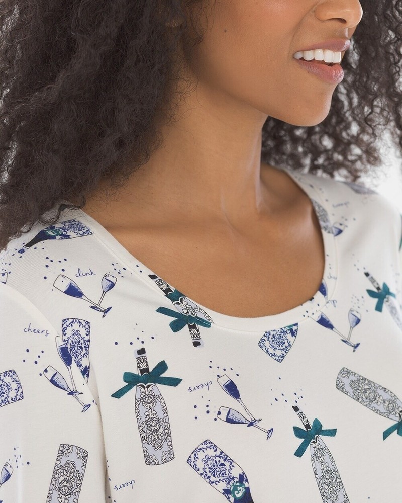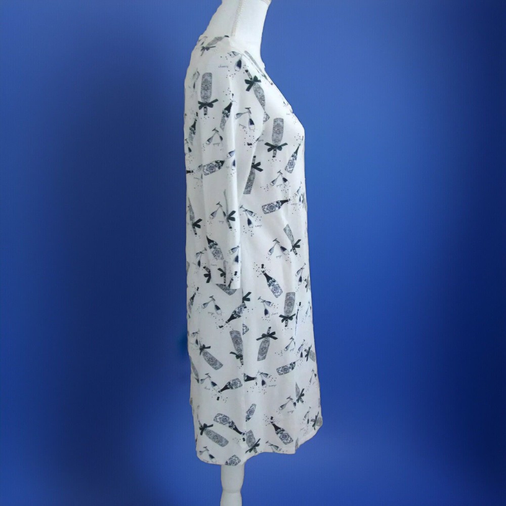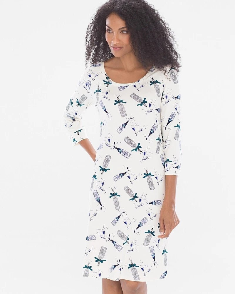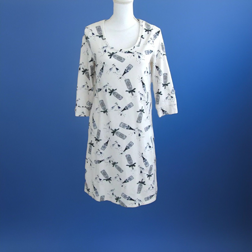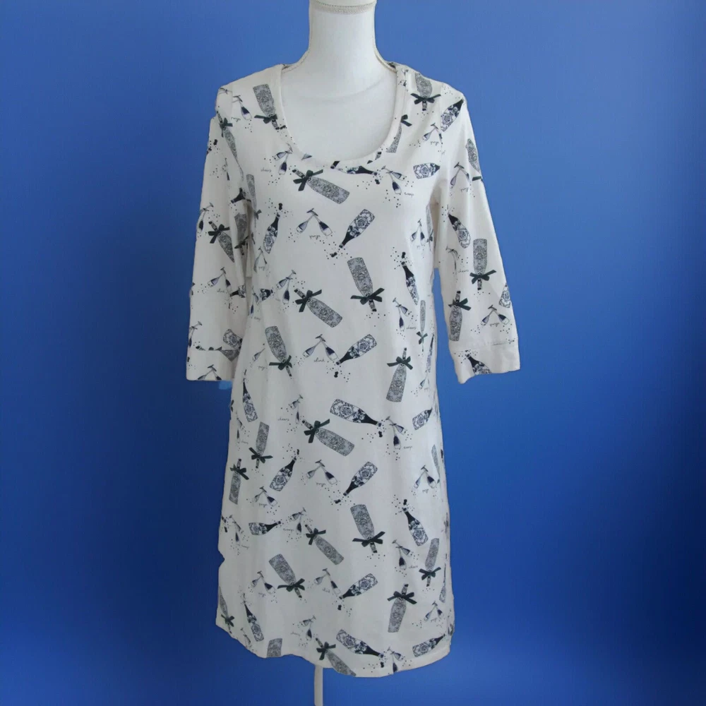 From Soma, a cute, cozy comfortable soft jersey knit sleepshirt done in an Ivory background with a print done in blues. Crafted with plenty of stretch and perfect length 3/4 sleeves. Great condition! Details Scooped neckline. 3/4 sleeve with banded cuff and piped details. Back of neckline reinforced with satin charmeuse binding. Approximately 35" from shoulder on body. 57% cotton, 38% modal, 5% spandex. Machine wash, cold. Size Small Suggested Measurements for a Size Small: Bust: 34.5"-35.5" Waist: 28"-29" Hips: 37.5"-38.5" Please measure a garment of your own to make sure this will fit.