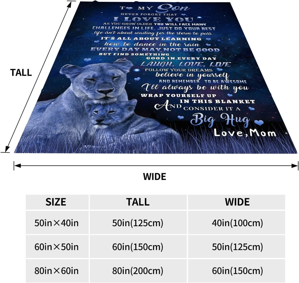 Son Lion Blanket Gift from Mom – Cozy 50"x60" Flannel Throw for Comfort ‹ › ‹ › ‹ › ‹ › ‹ › ‹ › ‹ › ‹ › ‹ › ‹ › ‹ › Son Lion Blanket Gift from Mom Cozy 50"x60" Flannel Throw for Comfort Meaningful Design: A timeless reminder of the unbreakable bond between a mother and son, this blanket is the perfect way to offer comfort during life's trials. Perfect Size: Measuring 60" x 50" (150cm x 125cm), this blanket is lightweight and foldable, ideal for both teens and adults. Versatile Use: Suitable for all seasons and can be enjoyed at home on the sofa, bed, or during outdoor activities like camping and hiking. High Quality: Crafted from anti-pilling flannel, this blanket boasts a velvety soft touch, ensuring maximum warmth and comfort without shedding. Easy Care: Machine washable and quick-drying for effortless maintenance, ensuring durability without the hassle. Why Choose the Son Lion Blanket? This beautiful flannel throw serves not only as a functional item but also as an emotional support piece for your son, conveying your love and reassurance. Ideal for various occasions - Birthdays, Father's Day, Christmas, Graduation, and more - this blanket is a heartfelt gift that keeps cherished moments alive. Gift your son a comforting embrace through this warm and cozy blanket – a reminder that your love and blessings are always with him, no matter where life takes him. Shipping Free & Fast Shipping - We offer free shipping to most of the USA with a normal delivery time of 3-7 days. However, due to the current situation, additional delivery time (up to 3 weeks) may be required for some items. Alternative Carriers - We may use alternative carriers (e.g. USPS, FedEx, UPS, etc.) to ensure your package arrives safely and on time. Due to the use of multiple carriers, we are unable to provide a tracking number automatically. Handling Time - Orders are processed and shipped within 1-2 business days of receiving cleared payment. Shipping Restrictions - Shipping to Alaska, Hawaii, Puerto Rico, Guam, and other US territories may incur shipping charges or delivery restrictions. Please contact us before ordering, or your order can be refunded/cancelled. State Restrictions - There may be restrictions based on your state of purchase. For example, certain items may not be shipped to California due to state regulations. Contact for Tracking Updates - If you require tracking updates or have any concerns about the delivery of your order, please feel free to contact us, and we will be happy to assist you. Return 30-Day Hassle-Free Returns - We want you to be completely satisfied with your purchase. If you are not, you can return the item within 30 days of receiving it for a full refund or exchange. Easy Return Process - To start a return, simply contact us and we will provide you with a prepaid return shipping label and detailed instructions. Restocking Fee - There are no restocking fees for returns. However, the buyer is responsible for return shipping costs if the return is not due to a seller's error. Refund Processing Time - Refunds will be processed within 5 business days of receiving the returned item in its original condition. Payment We accept all major credit cards, PayPal, and Apple Pay for your convenience. Your payment information is secure and encrypted to ensure a safe and seamless transaction. Please complete your payment within 3 days of purchase to avoid any delays in shipping. Feedback Your feedback is extremely important to us. We strive to provide the best products and customer service possible. If you are satisfied with your purchase, please take a moment to leave us a positive review. If you have any concerns or issues with your order, please contact us before leaving negative feedback. We are committed to resolving any problems and ensuring your satisfaction. Contact Us If you have any questions or concerns, please feel free to reach out to our customer support team. You can contact us through the eBay messaging system. We are available Monday to Friday, 9:00 am to 5:00 pm EST, and we will do our best to respond to your inquiry within 24 hours. Buy it now and enjoy a pleasant shopping experience! UPC: Not Set Item Length: Blanket for Son Item Width: Blanket for Son Unit Quantity: 1 Material: Flannel,Polyester Features: Lightweight,Anti-Pilling,Anti-Wrinkle,Non-Shedding,Anti-Allergic Theme: People Character: Not Set Care Instructions: Easy Care,Hand Wash,Machine Wash Department: Adults Room: Living Room,Outdoor Labels & Certifications: Not Set Brand: Unbranded Size: 60 x 50 in Type: Throw Blanket Character Family: Not Set Color: To Son from Mom Pattern: Animal Print Style: Modern MPN: Not Set Country/Region of Manufacture: Not Set Insulation: All Seasons Shape: Rectangular Closure Type: No Closure Product Line: Not Set Drop Length: Not Set GSM (Grams per Square Meter): Below 150 Model: Not Set Thread Count: Unknown Unit Type: Unit Personalize: Not Set