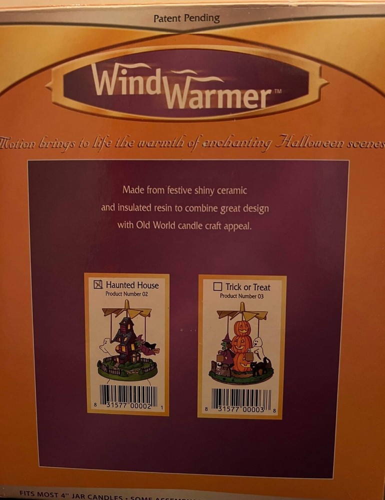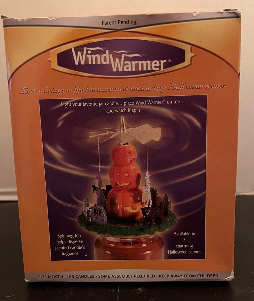 Soy Basics Wind Warmer Halloween Haunted House Spinning Candle Topper Soy Basics Wind Warmer Halloween Haunted House Spinning Candle Topper. **Haunted house needs to be re-glued to the cemetery, and metal stem missing from spinner but can be easily repaired!**