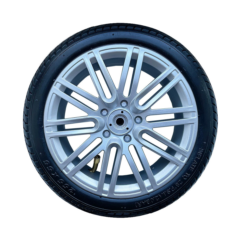 Ersatzrad hinten für Bentley Trike Kinderwagen Größe 10" 255x55 vormontiertes Komplettrad (Felge, Reifen, Schlauch, Ventil) Farbe: silber/ Alu-Look Dieses Ersatzrad ist passend für den Bentley Trike mit einer Größe von 10 Zoll und einer Breite von 255 Millimetern. Das silberne Rad ist für den Einsatz an der hinteren Achse des Kinderwagens vorgesehen.
