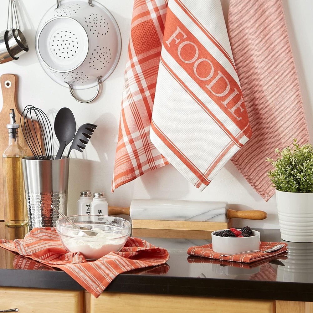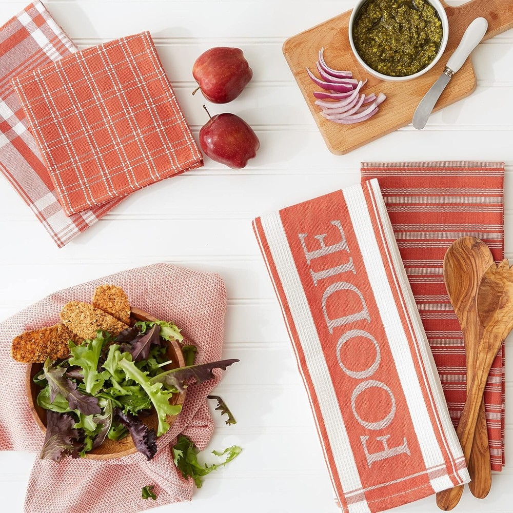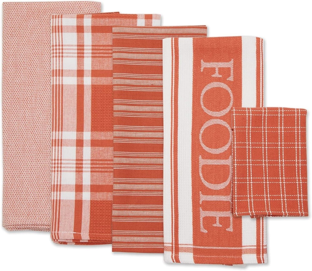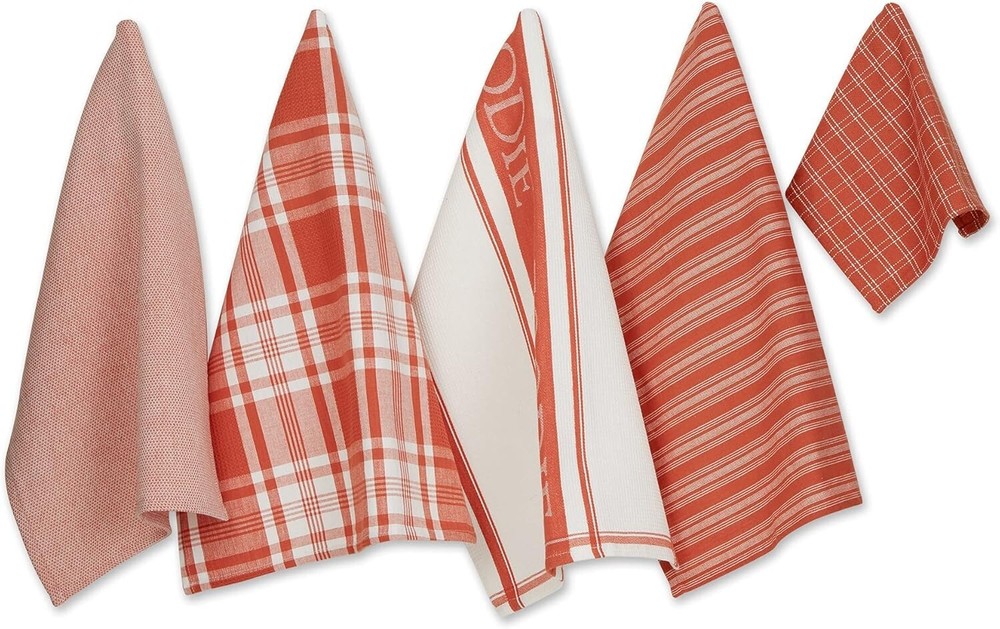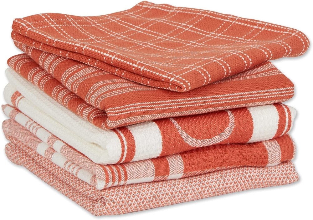 DII offers full collections of trend based designs, bringing you fresh, innovative lines of quality home and garden products for every season. Let DII products become a valuable part of your life. Cotton A DISH TOWEL SET TO TACKLE KITCHEN MESS - Each set includes 4 dishtowels that measure 18 x 28" and 1 dishcloth that measures 13 x 13"; easily handles all of your drying and cleaning kitchen tasks EASY CARE LONG-LASTING MATERIAL - 100% cotton fabric, machine washable; wash with cold water on gentle & tumble dry low. Do not bleach or run through a hot dryer ULTRA ABSORBENT AND LOW LINT - These towels are lightweight, super absorbent and dry quickly; machine washable and durable for daily use. Get the job done quickly the RIGHT way with these dish towels! GREAT WELCOME GIFT FOR YOUR NEW NEIGHBORS - These easy care dishtowels come in multiple colors, perfect to coordinate with any kitchen; they also make great Mother's Day, holiday, housewarming and hostess gifts