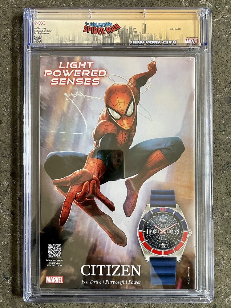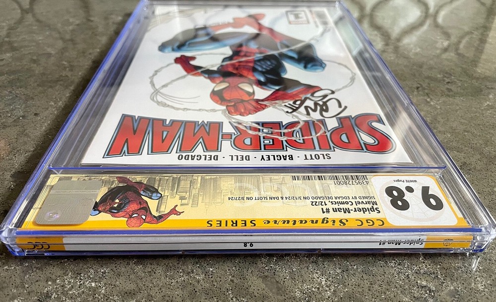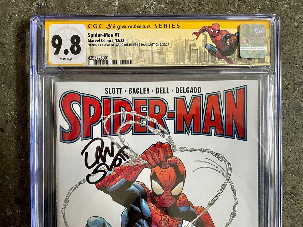 DISCOUNTED PRICE!!! (compared to other listings for similar SIGNATURE SERIES grade) Spider-Man #1 (2022) Dan Slott & Edgar Delgado Signature Custom NYC Spider-Man Label - CGC 9.8 AWESOME Mark Bagley COVER with CUSTOM Spider-Man Label!!! DUO Signatures!!! Dan Slott & Edgar Delgado GREAT PRICE & ARTWORK - ADD THIS to your graded Spider-Man COLLECTION! CGC Cert # 4395728001 Grade: 9.8 Page Quality: WHITE Issue Date: 12/22 Marvel Comics Custom Spider-Man NYC CGC Label Dan Slott story Mark Bagley & John Dell art Mark Bagley cover Spider-Man #157 Grader Notes: Unavailable SIGNED BY EDGAR DELGADO ON 3/12/24 & DAN SLOTT ON 3/27/24