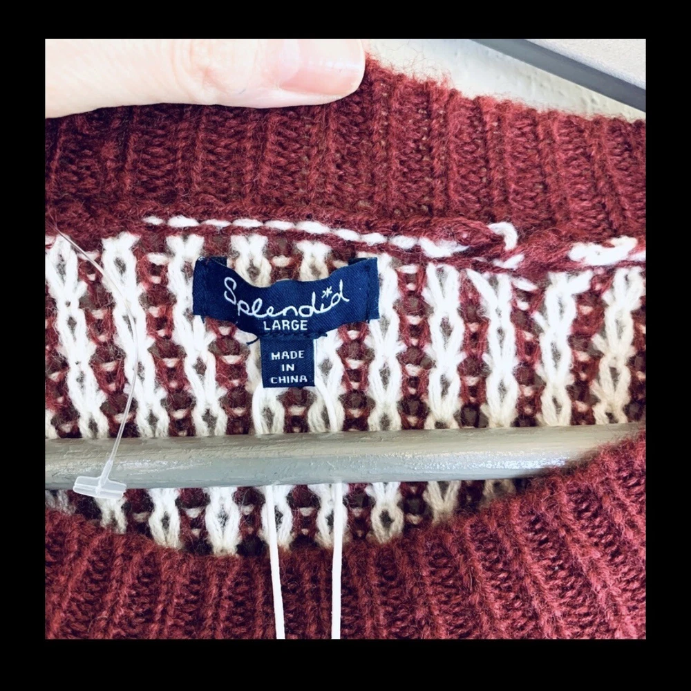 Splendid Cozy Knit Sweater Red/Pink/Sz:L/NWT Brand new with tags! Size:Large/Armpit to armpit:24.5”/Length:22” Color: Burgundy/Pink/white Material: Acrylic Very cozy and comfortable knit sweater! If you have any questions please let me know via message! Happy shopping! Reasonable offers are always welcome!