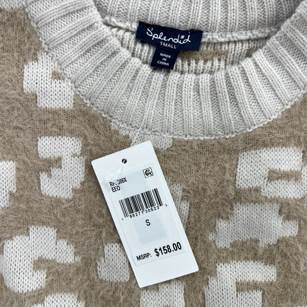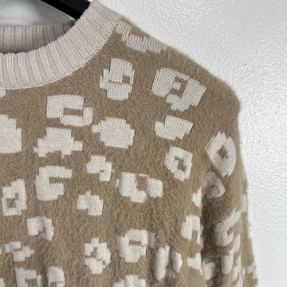 Splendid Mal Leopard Sweater Womens Small Beige Pullover Crew Neck Cozy Soft
