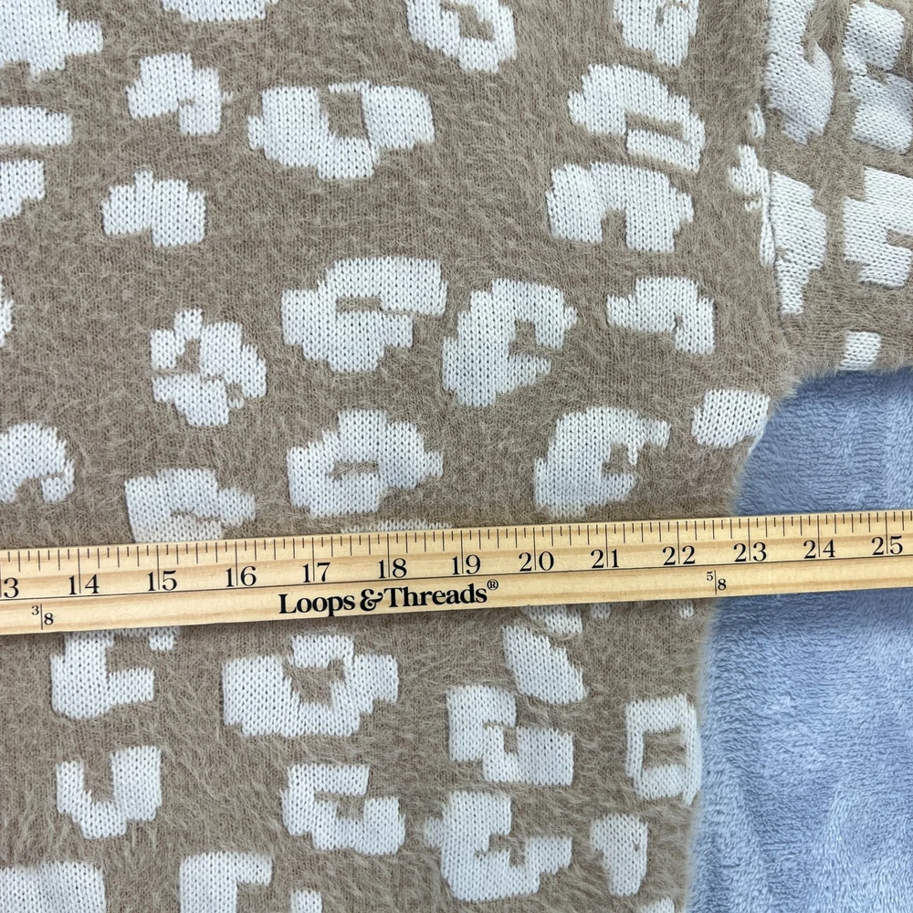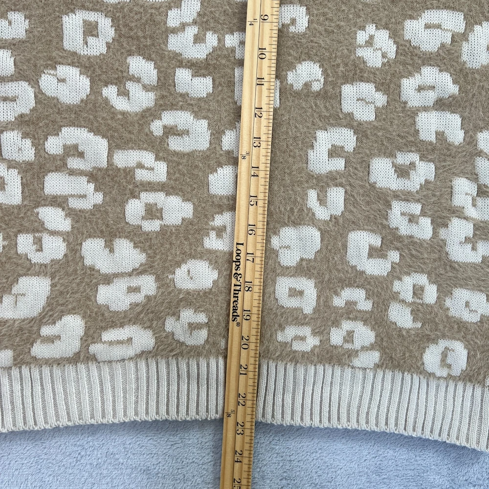 Splendid Mal Leopard Sweater Womens Small Beige Pullover Crew Neck Cozy Soft...