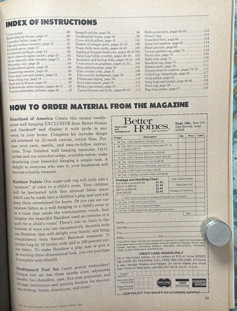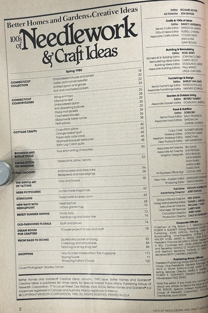 Better Homes and Gardens Creative Ideas Magazine. "100's of Needlework & Craft Ideas." magazine. Spring 1980. Fun to see the early 1980's fashions, crafts, decor and more. Great for inspiration. Great for inspiration. Magazines of this type were to showcase items for which patterns or materials could be purchased by mail order, so part catalog; part pattern magazine. There are some patterns included. I included a scan of the directory showing items for which instructions and/or patterns are included in the magazine. Size: 8.5 x 11." 144 pages. Thanks for stopping by today. Please check out my store for other interesting collectible items. I do offer discounts for multiple purchases, and I am happy to combine shipping. out and about weekly scouring local estate sales for cool items to list. If you follow me on eBay, newly listed items of interest to you will come up on your newsfeed. You can find and follow me on Facebook as cab4dk/Kissypop Cottage. Have a great day! I am always happy to combine shipping. Please message me for a shipping estimate for combined orders.