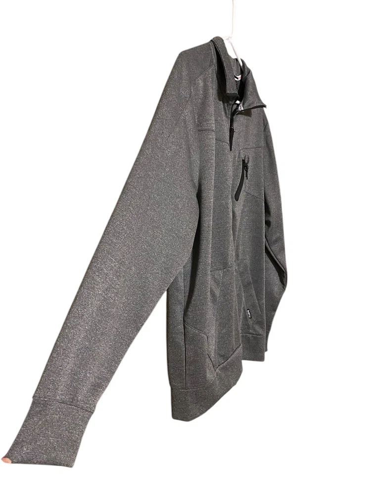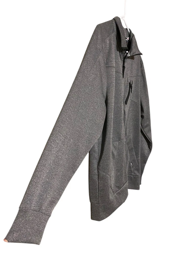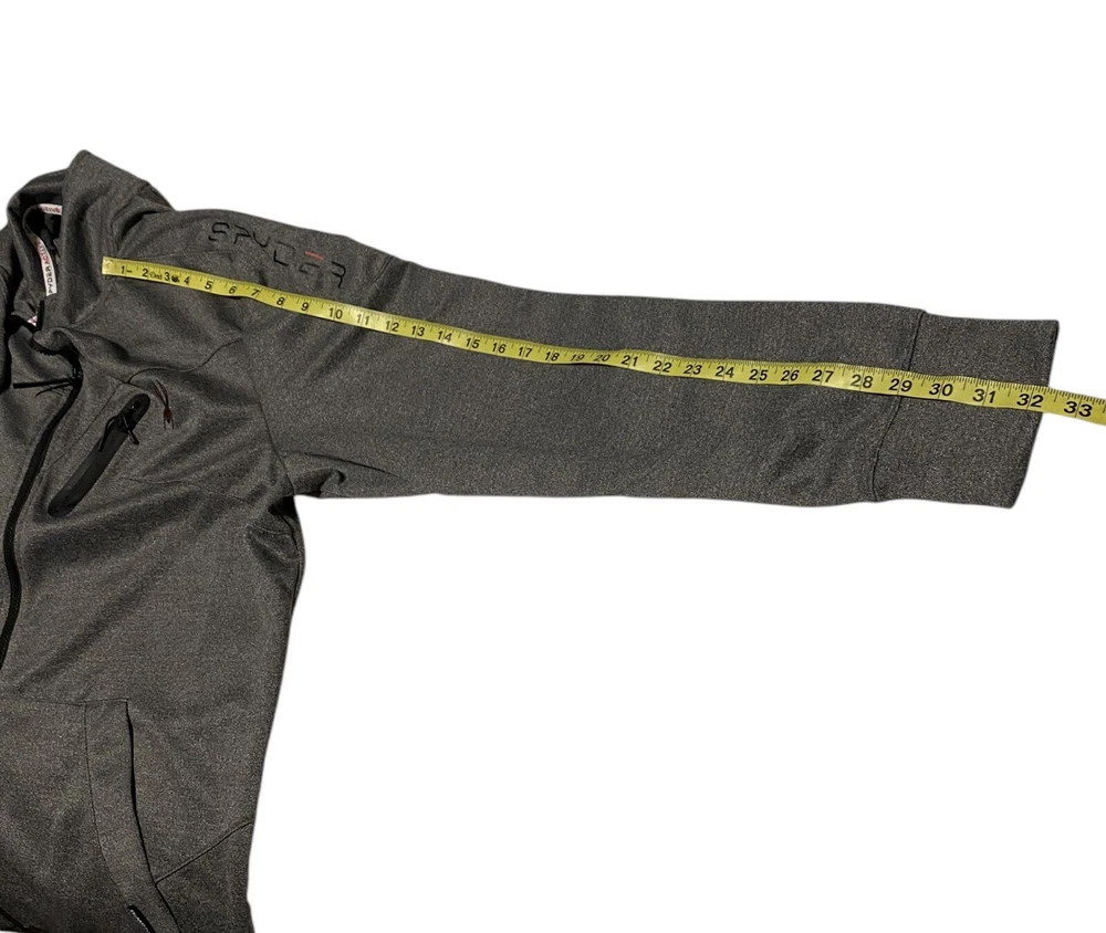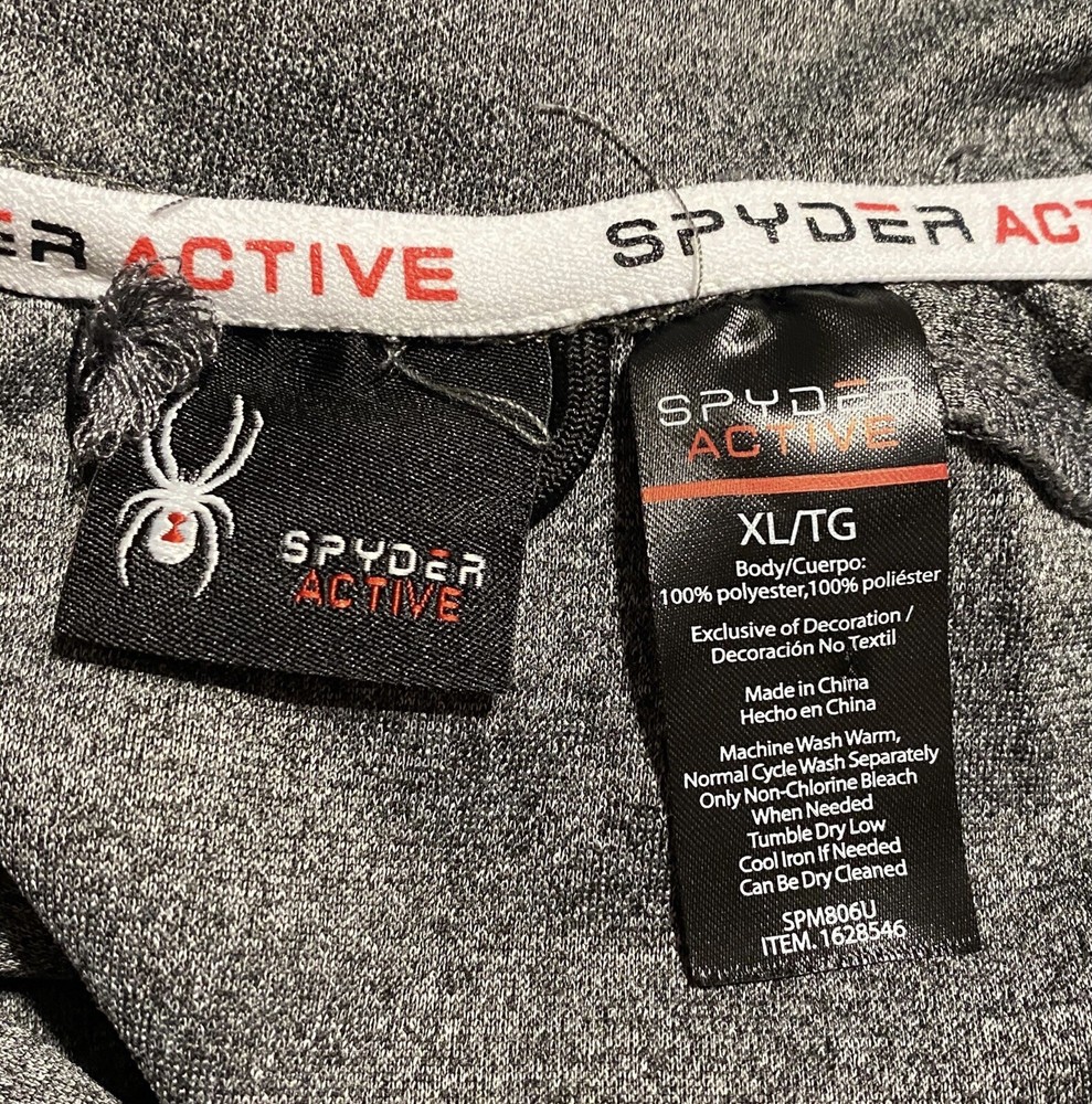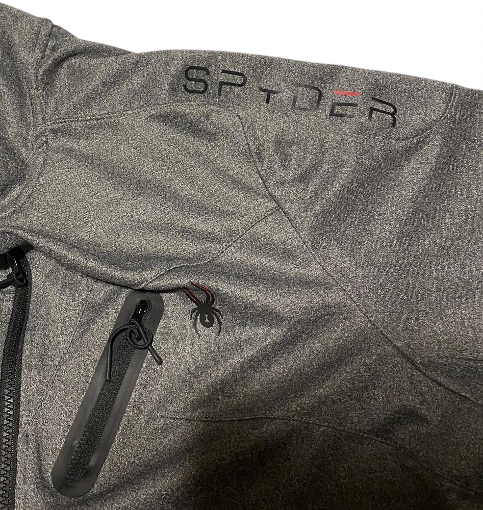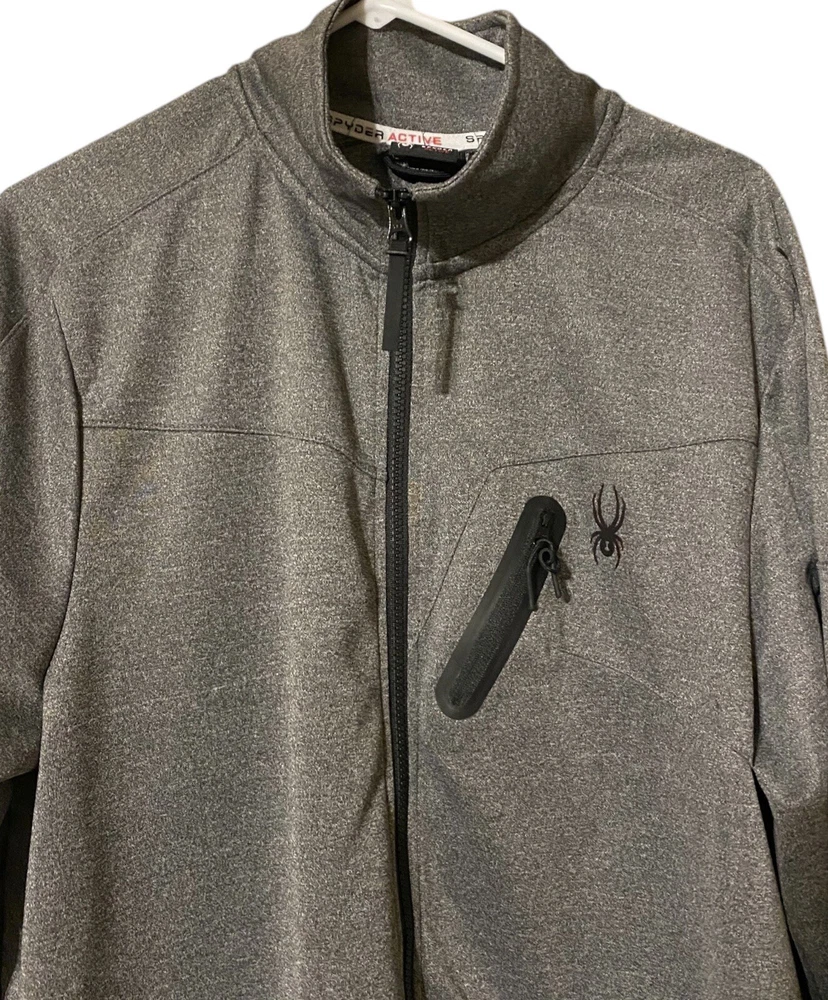 This Spyder Active Sweatshirt Jacket is designed for men in size XL. It features a full zip closure for easy wear and has a cozy gray polyester material for comfort. The jacket showcases the Spyder logo as an accent and includes pockets for added functionality. The long sleeve design and regular fit make it suitable for winter, fall, and spring seasons, providing both style and practicality for everyday wear.