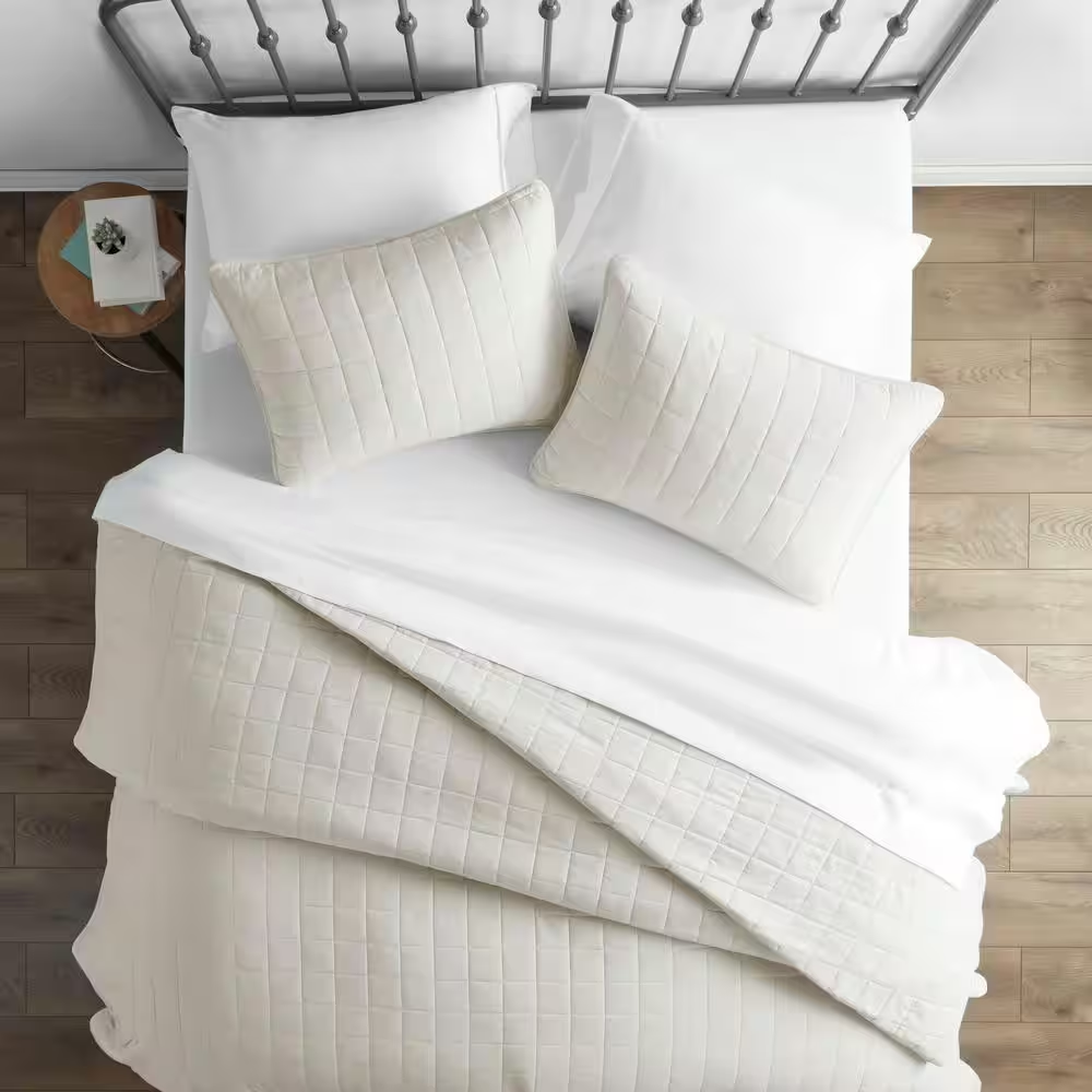 Square Ivory Queen Performance Quilted Coverlet Set with Soft Comfortable Design for Cozy Bedding