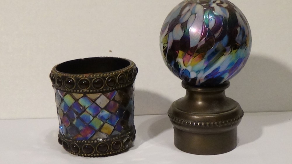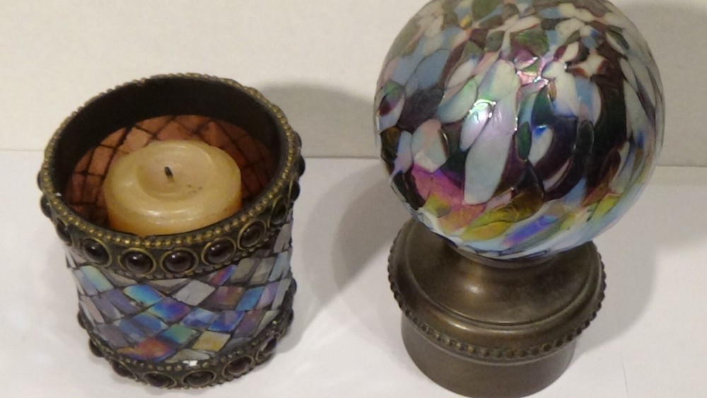 Stained Glass Mosaic Design Jeweled Candle Holder Metal Base Raz Imports India...