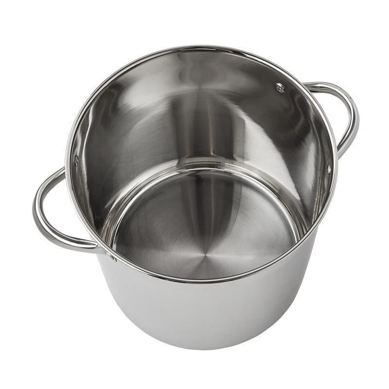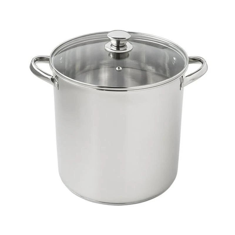 Product details Prepare amazing sauces, soups, pastas, and more with the sizable Mainstays Stainless Steel 12-Quart Stock Pot with Glass Lid. This large stock pot measures 10.04 ” L x 10.04 ” W x 9.64 ” H. Perfect for cooking family meals for any occasion. Designed with stylish stainless steel and glass, it ’ s sure to coordinate with your existing cookware. This sturdy stock pot features stay-cool handles, transparent glass lid, durable stainless steel construction and is induction safe. Ideal for helping you feed your family and friends at get-togethers, backyard barbecues, celebrations, and other special events. The Mainstays Stainless Steel 12-Quart Stock Pot with Glass Lid is a must-have cookware item in any kitchen. Sizable stock pot is perfect for preparing amazing sauces, soups, pastas, and more Dimensions: 10.04 ” L x 10.04 ” W x 9.64 ” H Weight: 4.04 lbs Induction Safe Materials: Stainless steel, glass Ideal for cooking for large gatherings as well as smaller groups Features stay-cool handles, transparent glass lid, and stainless steel construction Dishwasher safe. Wash before first use. Do not boil dry. Do not use cookware on high heat or high fl ame; use medium or lower heat settings. Match base of pan to stove burner size. High heat, high flame, or boiling dry can cause cookware to turn black or red. Handles and knobs may warm during heating. It is recommended to use oven mitts or pot holders when handling Stylishly designed to coordinate with your existing cookware