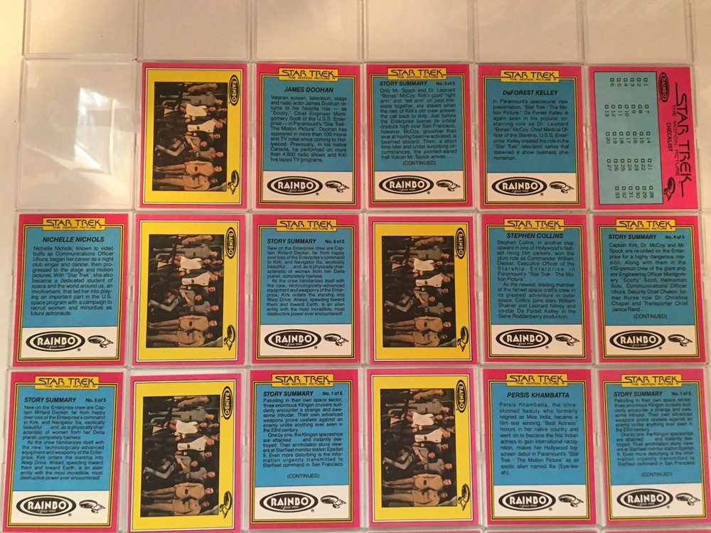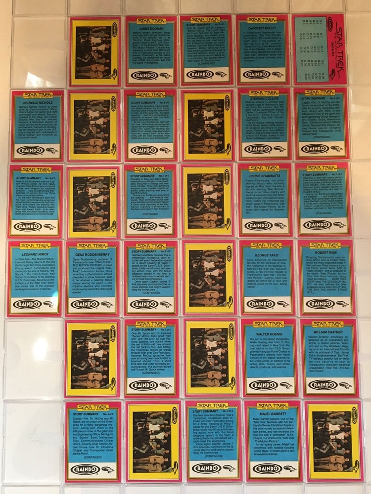 Description: Star Trek 1979 The Motion Picture Rainbo Bread Complete (33) Trading Card Set Contents: 33 cards. Manufacturer: Rainbo Bread, 1979. Condition: Mint/Near Mint. You will receive set picture...
