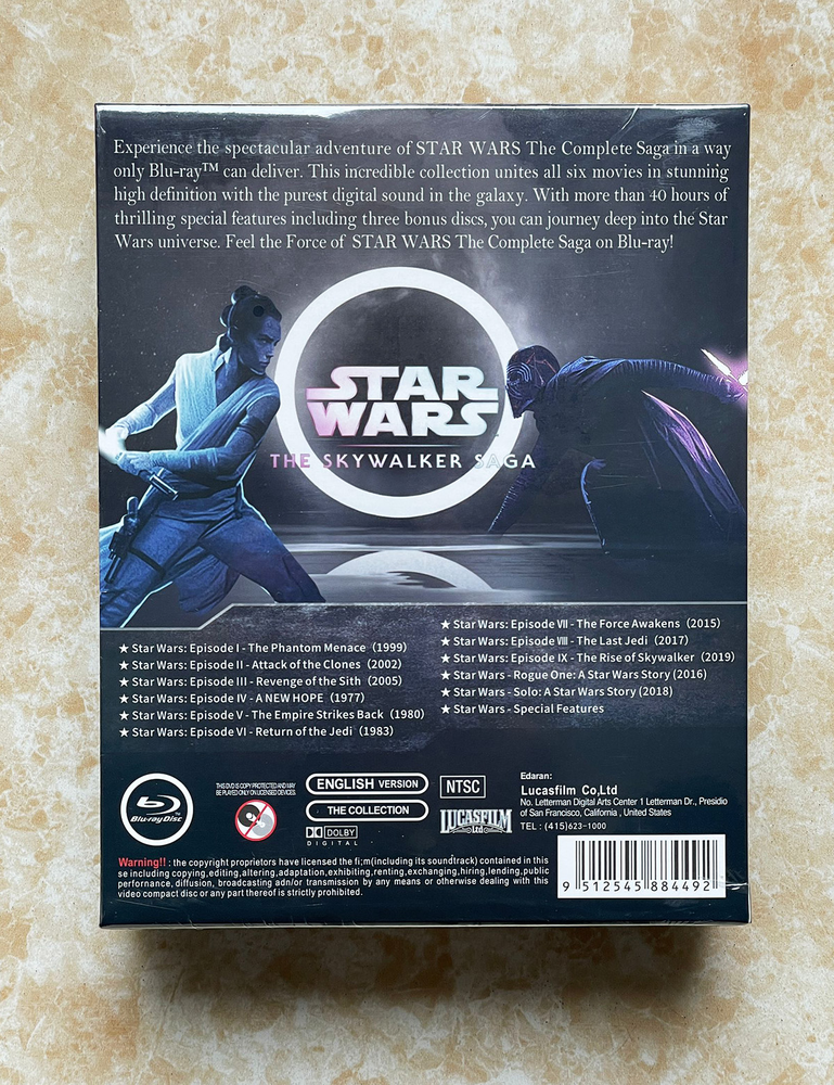 Star Wars: The Skywalker Saga Complete 12-Movies Blu-ray Collection New Title: Star Wars: The Skywalker Saga Format: Blu-ray Release Date: 2020 Number of discs: 12 Blu-ray: Region Free Note: This product is an ultra-clear Blu-ray disc, which needs to be played by Blu-ray Disc player or Blu-ray drive. Shipping : Shipping with Tracking Number, the tracking number will work within 2 days. Arrival time (estimated): 8 - 12 business days. All your purchases are guaranteed with your money back in case you are not satisfied with the quality of the product or if it presents any problem, just let us know and we will immediately give you a solution to the question asked.