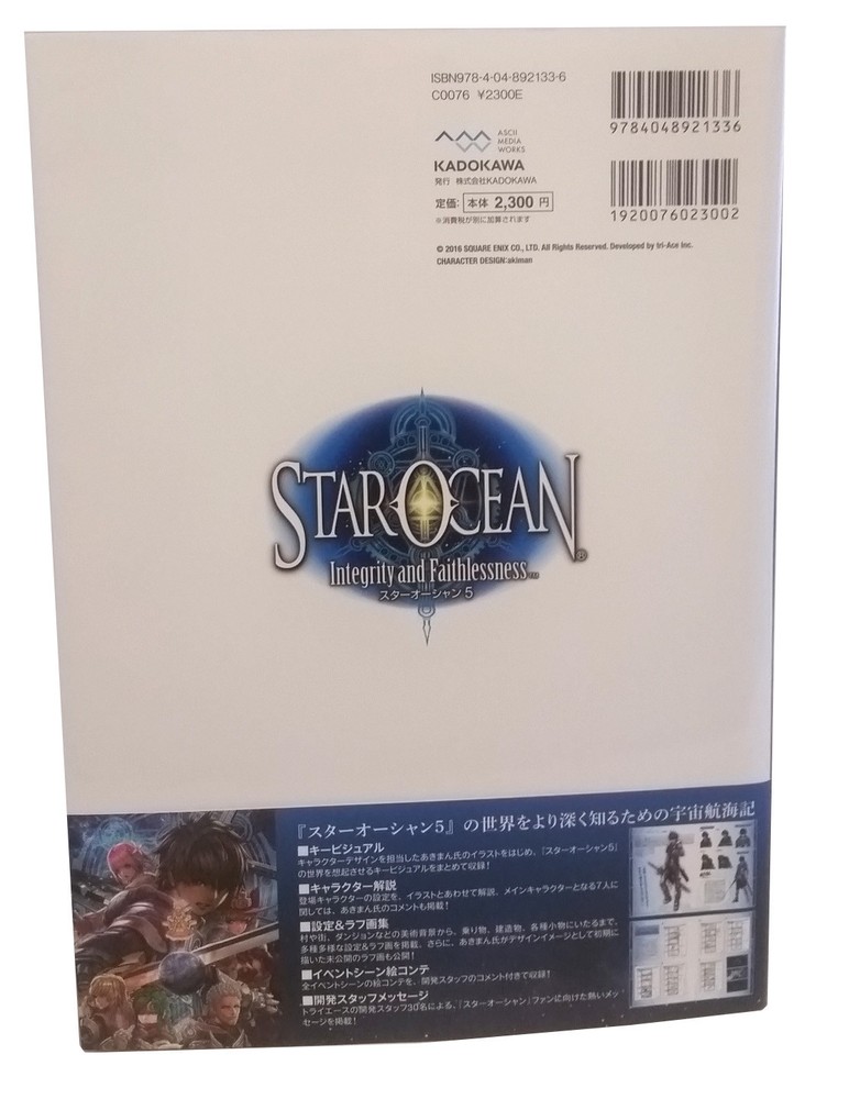 Star ocean 5 Design Materials Illustrations Contains plenty of information, design sketches, illustrations and artwork of the game. Language: Japanese. Soft cover book. Size: 25.4 x 18 x 1 cm 128 Pages. Free shipping , can take from 12 to 28 days depending on location. Other shipping options available at checkout, please consider Standard or Expedite shipping if you need the item faster. Ships within 1 to 3 business days after payment confirmation. Will ship to the address registered on your Paypal account only. Arigatou!