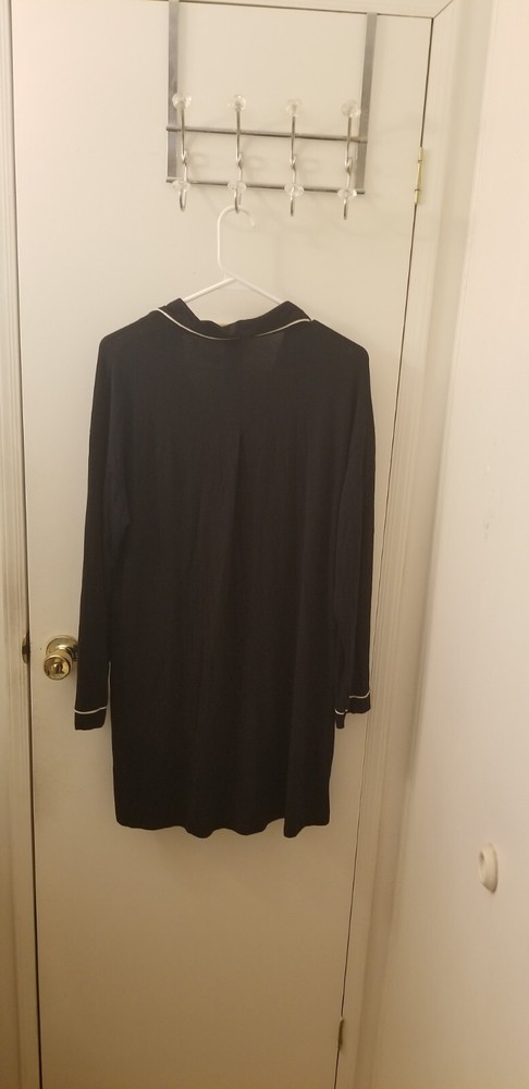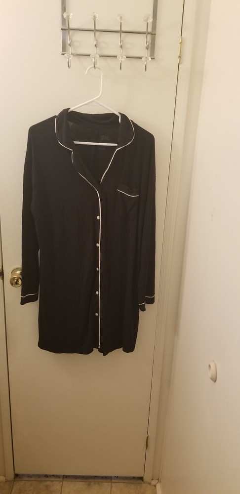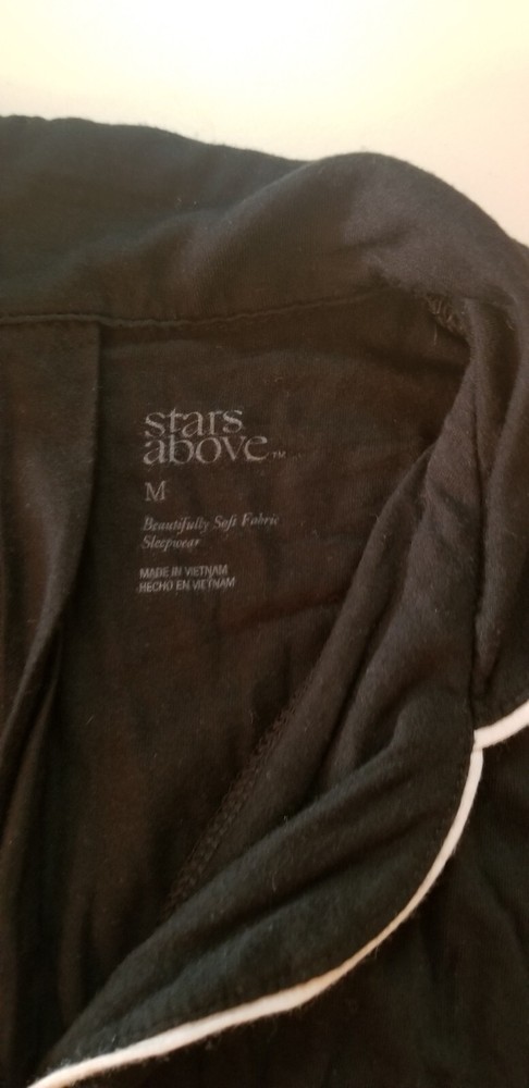 This black sleepshirt from Stars Above is the perfect addition to your nighttime wardrobe. Featuring a solid pattern and long sleeves, this cozy shirt is made with a combination of spandex and modal materials, making it comfortable and stretchy for a great night's sleep. The button-down closure adds a touch of style, while the medium size and regular fit make it a great choice for any woman. The fabric type is modal, which gives it a soft and lightweight feel, perfect for lounging around the house. The shirt is part of the Stars Above brand and features a stylish design that is perfect for any woman who loves to sleep in comfort. This sleepshirt is part of the Intimates & Sleep category, and is a must-have for any woman who wants to feel cozy and stylish while she sleeps.