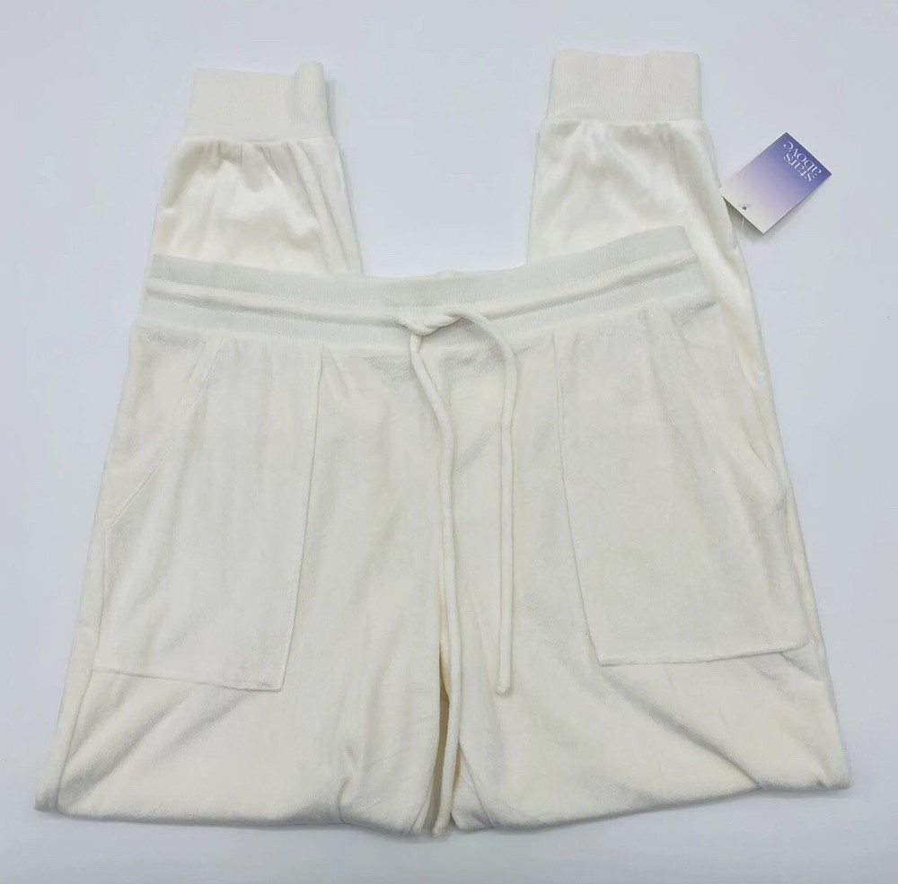 Elevate your loungewear game with these cozy fleece lounge jogger pants from Stars Above. Designed for women in size M, these pants feature a stylish off-white color with a fun star-themed pattern. Perfect for any casual occasion, these joggers are made with super soft fleece material that will keep you warm and comfortable all day long. The elastic waistband and cuffs provide a snug fit while the relaxed straight leg design creates a flattering silhouette. Whether you are running errands or lounging at home, these activewear pants will keep you looking and feeling great. Get ready to indulge in comfort and style with these Stars Above jogger pants.
