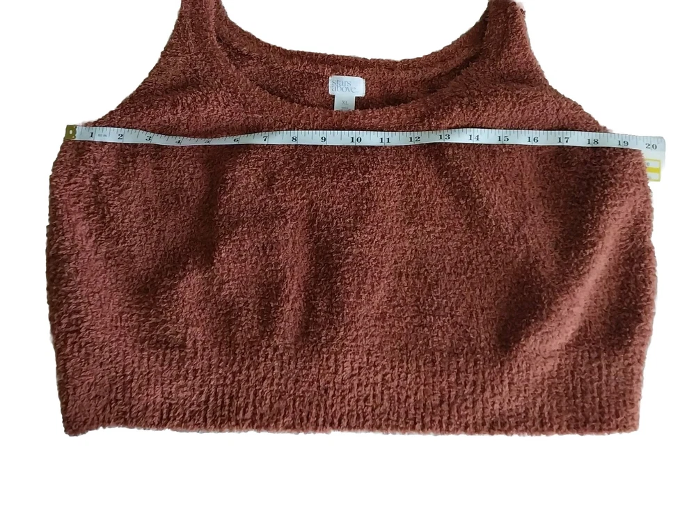 This Stars Above women's tank top is brown in color and features a round neckline, wide straps, and a pullover closure for easy wear. Size XL Measurements laying flat: Armpit to armpit - 20" Shoulder to hem - 18.5" New with tags! N
