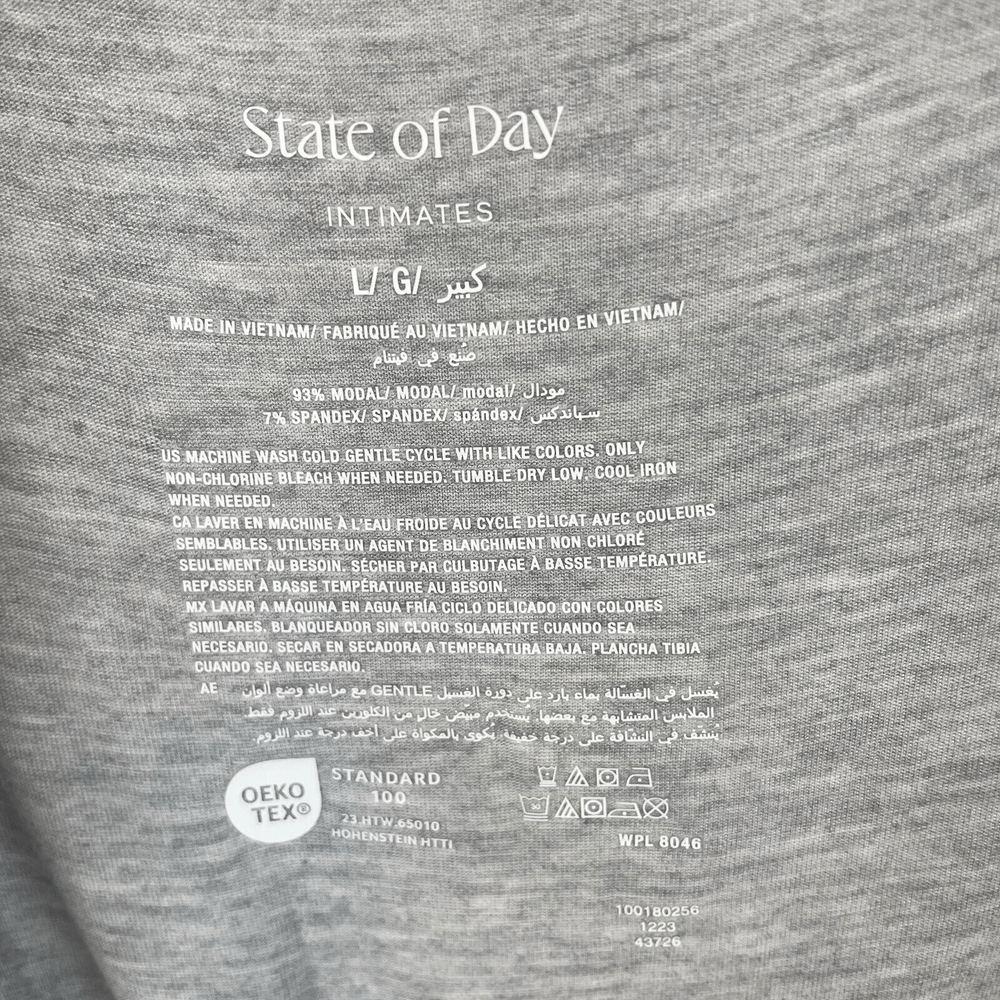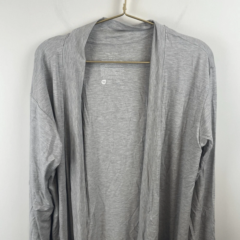 NAME: State of Day Modal Cardigan Cozy Robe Gray Size Large CONDITION: Excellent pre-owned condition- this is SO soft. COLOR: Gray FEATURES: Modal APROX MEASUREMENTS: Pit to Pit:26" Length: 32" 1146 14 oz *DISCLAIMER*:All measurements are approximate and taken laying flat. The actual color of an item may differ slightly from the images due to variations in lighting and monitor settings. I do my best to point out any and all imperfections, but some items may have minor imperfections or irregularities that I have missed. Feel free to ask any questions. Thank you for supporting my small business and giving new life to pre-owned clothing.