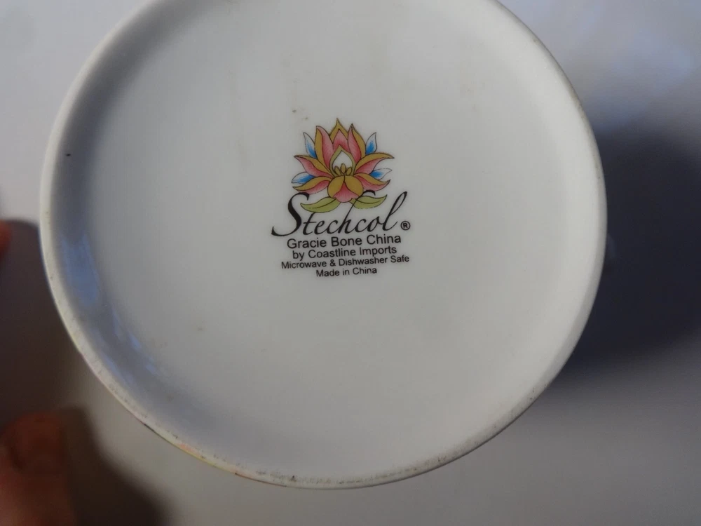 Stechcol Gracie Bone China Coffee Mug by Coastline Imports Floral Design. This is a preowned item. There is a scratch on the outside design - please see photo. Please see photos for overall condition....