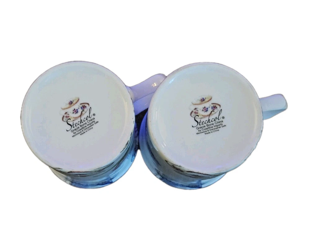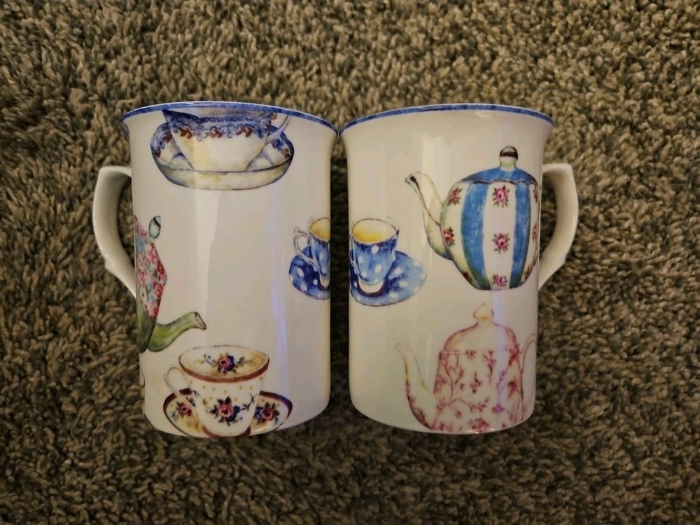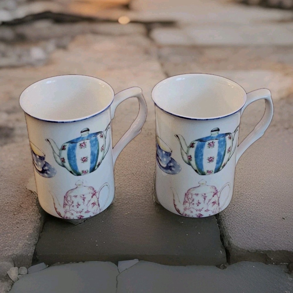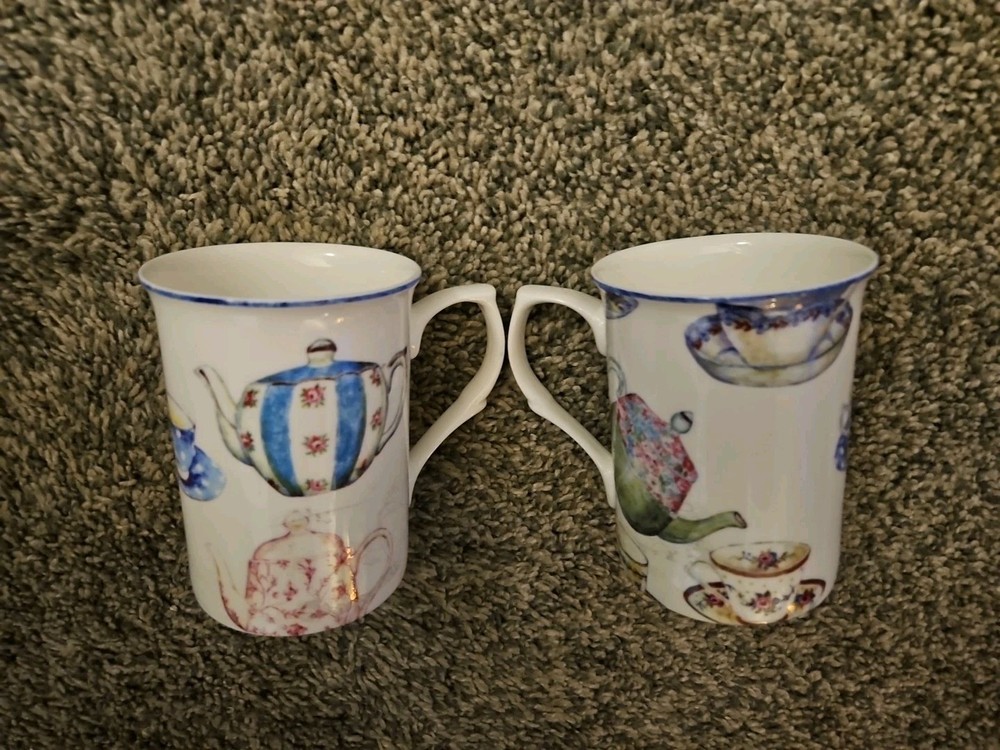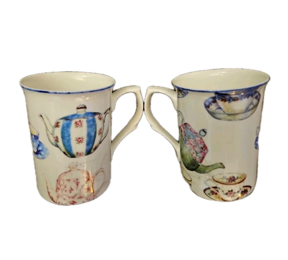 Stechcol Gracie Bone China Set of Teapot Design Mugs 4"T X 3"W In excellent pre-owned condition.