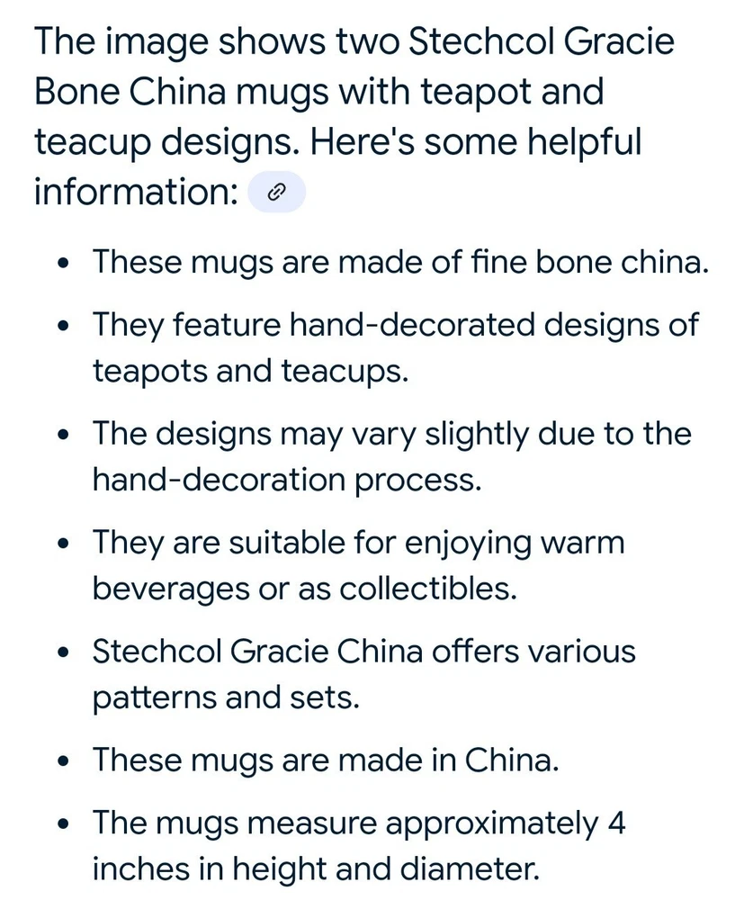| Set Includes | Mug, 2 mugs |