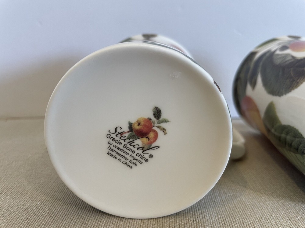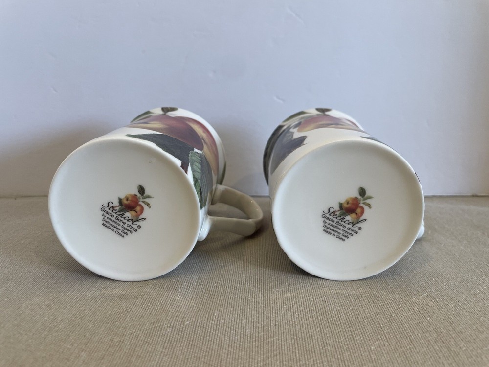 Enjoy your tea in style with these beautiful Stechcol Gracie bone china tea mugs. The mugs feature a stunning multicolor fruit design that is perfect for adding a pop of color to your kitchen. They are also dishwasher safe, making them easy to clean and maintain. These mugs are perfect for tea lovers who enjoy entertaining guests or simply enjoying a cup of tea alone. Made in China, these mugs are crafted from high-quality bone china and are built to last. With a service for two, you can share your tea with a friend or loved one. Add these Stechcol Gracie tea mugs to your collection today and enjoy the perfect blend of style and functionality. These are pre-owned but in excellent condition. There are no chips or cracks. Beautiful. Please see all attached photos and let me know if you have any questions. Thanks