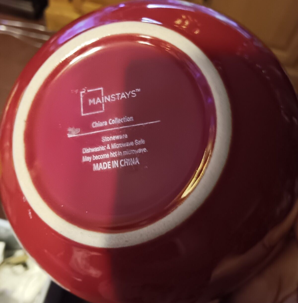 This beautiful set of one dinner plate and one dinner bowl from the Mainstays Chiara Collection is perfect for any meal. The red color adds a pop of style to your table setting. The stoneware material ensures durability and longevity, while the dishwasher and microwave-safe features make cleaning and reheating a breeze. The assembled product dimensions (L x W x H) are clearly displayed in the photo for your convenience. This set is ideal for anyone looking for a high-quality, yet practical addition to their dinnerware collection. Whether you're hosting a dinner party or just enjoying a meal at home, this set is sure to impress. Beautiful deep red, pictures don't do this justice !! Feel free to ask any questions....check out my other items !! NO returns or refunds