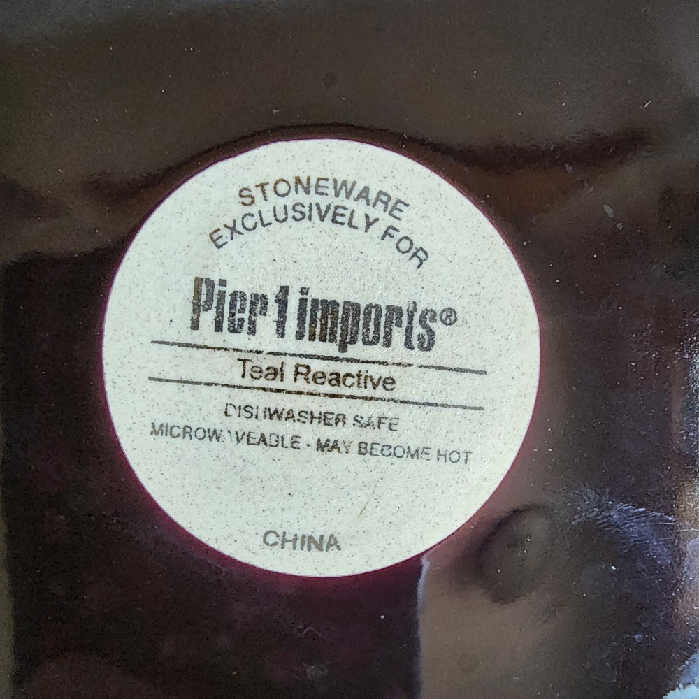 Stoneware Teal Reactive By Pier 1 Imports Snack/Salad Plate 8.25" Qty 1. Pre-owned, good condition. No chips or cracks visible. Measures 8.25" across. Please see pictures and contact me with questions...