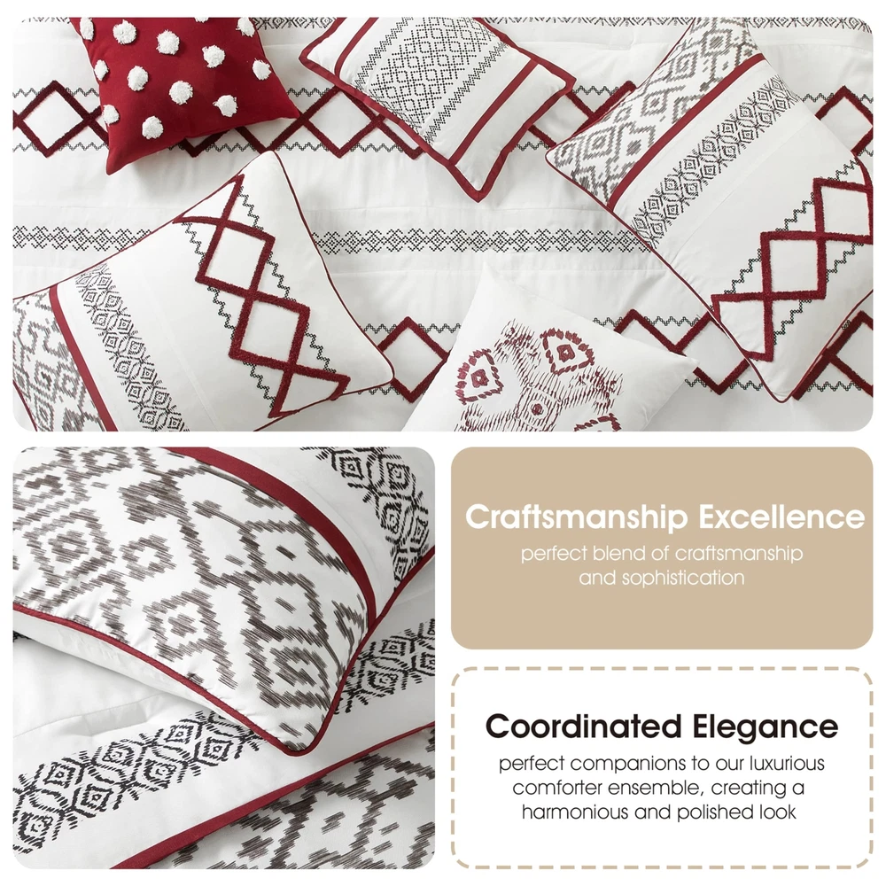 Item Name: Stratford Park Luxury 7 Piece Cozy Comforter Set, California King, White and Red, Embroidered Bedding Sets, Premium Microfiber, All Season Home Decor Description: Surround yourself in an exotic garden with the Orion Comforter Set. Vibrant colors create intricate over scaled floral medallions that are bordered by luscious vines while the delicately metallic shimmer add a rich textural dimension. [Exquisite and Exclusive Design] Soft color print combined with very dimensional terry embroidery give this set very luxury look .Our fashion forward comforter sets blend style and function to give you the best looking and most comfortable bedding. | [Supreme Softness] Immerse yourself in the unparalleled softness of premium polyester, designed for a luxurious sleep experience.Crafted with durability in mind, ensuring long-lasting comfort for years to come. | [What You Can Get] 1 Comforter- 104 inches x 92 inches,1 Bedskirt 72 inches x 84 inches + 15 inch drop,2 Pillow Shams - 36 inches x 20 inches,3 Decorative Pillows -1-18 inches x18 inches 1-16 inches x 16 inches, 1-12 inches x 18 inches | [Easy Care]Machine wash cold,gently and separately.Do not bleach. Tumble dry low.Remove promptly.Do not iron. | [Great Gift] A thoughtful and practical present that adds a touch of elegance to any bedroom.Perfect for friends or family moving into a new home.Help them create a warm and inviting space with this stylish quilt set. Quantity: 7 ------------------------------------------------------------------------------------------------------------------------------------------------------------------------------- Diamond Home strives to provide excellent customer service, fast delivery, and high quality products. Should a problem occur with your order, please contact us right away through eBay π βοΈ Guaranteed 30 Days to Return once delivered! βοΈ We offer FREE SHIPPING on all orders! π βοΈ All items ship from the USA. βοΈ Receive a tracking number within 1-3 business days! βοΈ Receive your order 3-5 business days once shipped out! β Most orders are shipped via FedEx, UPS, or USPS. β We accept Credit Card or Paypal! β We do not accept PO Boxes, please provide a physical address. β We do not accept Freight Forwarding addresses. β We only ship to the lower 48 states. π¦ Hassle-free Returns, simply message our store to get a prepaid return label. β We cover the return cost only if you received a damaged item, wrong item sent by us, or missing parts. β For all other reasons such as no longer needed, the label costs would deduct from your refund. β Important: do not send back without getting a label through us first. β Once in transit back to our warehouse, you will receive your refund immediately, no waiting to deliver back! π ATTENTION BRAND OWNERS [PLEASE READ] βΊ Unauthorized item listed on our store? Copyright, Trademark, or Patent infringement found? β Simply, provide us the eBay Item or Brand Name, and our team will delete it within hours βοΈ GUARANTEED. QUICK. β Please DIRECTLY MESSAGE our store through eBay and we will reply right away that SAME DAY to remove. β We apologize for any listing error made by our staff or coding error and understand how important it is to protect your brand. β We respect your brand's integrity and we will REMOVE any allegedly infringing products from our catalog quickly.