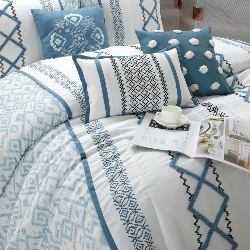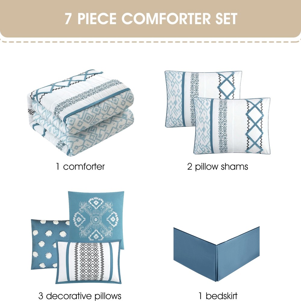Item Name: Stratford Park Luxury 7 Piece Cozy Comforter Set Queen Size Blue Embroidered Bedding Sets Premium Microfiber All Season Home DΓ©cor Description: Surround yourself in an exotic garden with the Orion Comforter Set. Vibrant colors create intricate over scaled floral medallions that are bordered by luscious vines while the delicately metallic shimmer add a rich textural dimension. [Exquisite and Exclusive Design] Soft color print combined with very dimensional terry embroidery give this set very luxury look .Our fashion forward comforter sets blend style and function to give you the best looking and most comfortable bedding. | [Supreme Softness] Immerse yourself in the unparalleled softness of premium polyester, designed for a luxurious sleep experience.Crafted with durability in mind, ensuring long-lasting comfort for years to come. | [What You Can Get] 1 Comforter- 90 inches x 92 inches,1 Bedskirt 60 inches x 80 inches + 15 inch drop,2 Pillow Shams - 26 inches x 20 inches,3 Decorative Pillows -1-18 inches x18 inches 1-16 inches x 16 inches, 1-12 inches x 18 inches | [Easy Care]Machine wash cold,gently and separately.Do not bleach. Tumble dry low.Remove promptly.Do not iron. | [Great Gift] A thoughtful and practical present that adds a touch of elegance to any bedroom.Perfect for friends or family moving into a new home.Help them create a warm and inviting space with this stylish quilt set. Quantity: 7 ------------------------------------------------------------------------------------------------------------------------------------------------------------------------------- Diamond Home strives to provide excellent customer service, fast delivery, and high quality products. Should a problem occur with your order, please contact us right away through eBay π βοΈ Guaranteed 30 Days to Return once delivered! βοΈ We offer FREE SHIPPING on all orders! π βοΈ All items ship from the USA. βοΈ Receive a tracking number within 1-3 business days! βοΈ Receive your order 3-5 business days once shipped out! β Most orders are shipped via FedEx, UPS, or USPS. β We accept Credit Card or Paypal! β We do not accept PO Boxes, please provide a physical address. β We do not accept Freight Forwarding addresses. β We only ship to the lower 48 states. π¦ Hassle-free Returns, simply message our store to get a prepaid return label. β We cover the return cost only if you received a damaged item, wrong item sent by us, or missing parts. β For all other reasons such as no longer needed, the label costs would deduct from your refund. β Important: do not send back without getting a label through us first. β Once in transit back to our warehouse, you will receive your refund immediately, no waiting to deliver back! π ATTENTION BRAND OWNERS [PLEASE READ] βΊ Unauthorized item listed on our store? Copyright, Trademark, or Patent infringement found? β Simply, provide us the eBay Item or Brand Name, and our team will delete it within hours βοΈ GUARANTEED. QUICK. β Please DIRECTLY MESSAGE our store through eBay and we will reply right away that SAME DAY to remove. β We apologize for any listing error made by our staff or coding error and understand how important it is to protect your brand. β We respect your brand's integrity and we will REMOVE any allegedly infringing products from our catalog quickly.