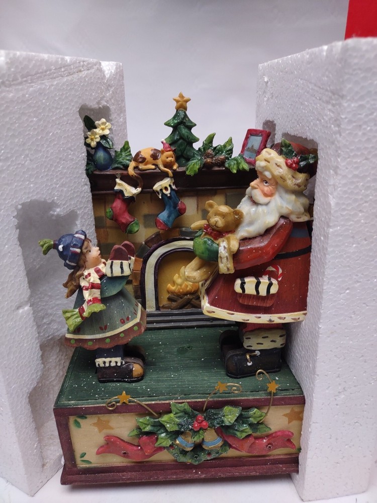 This vintage Studio Nova holiday figurine is a must-have for any Christmas enthusiast. Featuring a whimsical wind-up animated music box with a painted finish, this medium-sized piece is perfect for adding a touch of nostalgia to your holiday decor. The figurine depicts Santa Claus in a multicolor all-over pattern and is made of wood, making it a durable and original addition to your collection. Measuring 7 inches in length, 9 inches in height, and 4 inches in width, this Santa figurine is perfect for teens and adults alike. It weighs 3 pounds and is an original piece from an unknown time period. The music box features a musical melody that will add a festive touch to any room. This collectible is perfect for anyone who loves music, animation, and holiday decorations.
