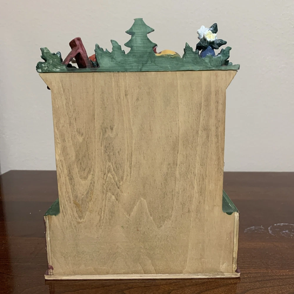This charming wind-up music box is a delightful holiday treasure! The vintage wooden design and sweet animation of Santa handing a gift to a little girl bring so much festive cheer. It plays beautifully and is in excellent condition—just a tiny missing star on the tree, barely noticeable. Perfect for collectors or as a nostalgic holiday decor piece!